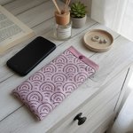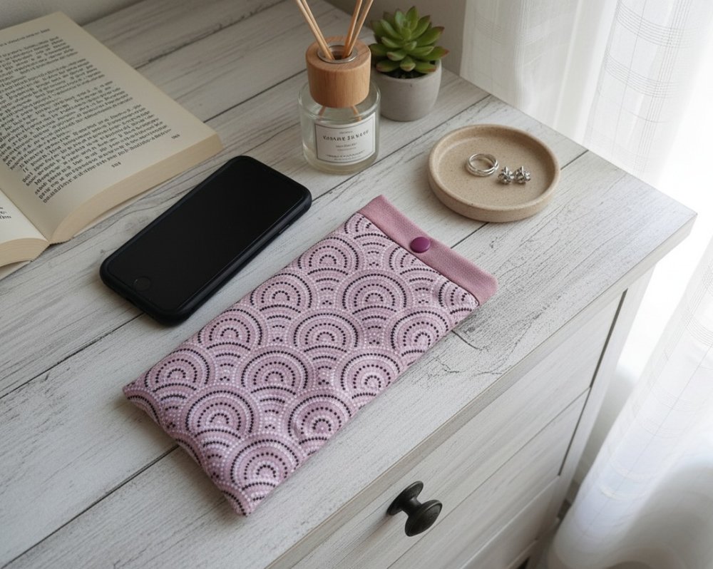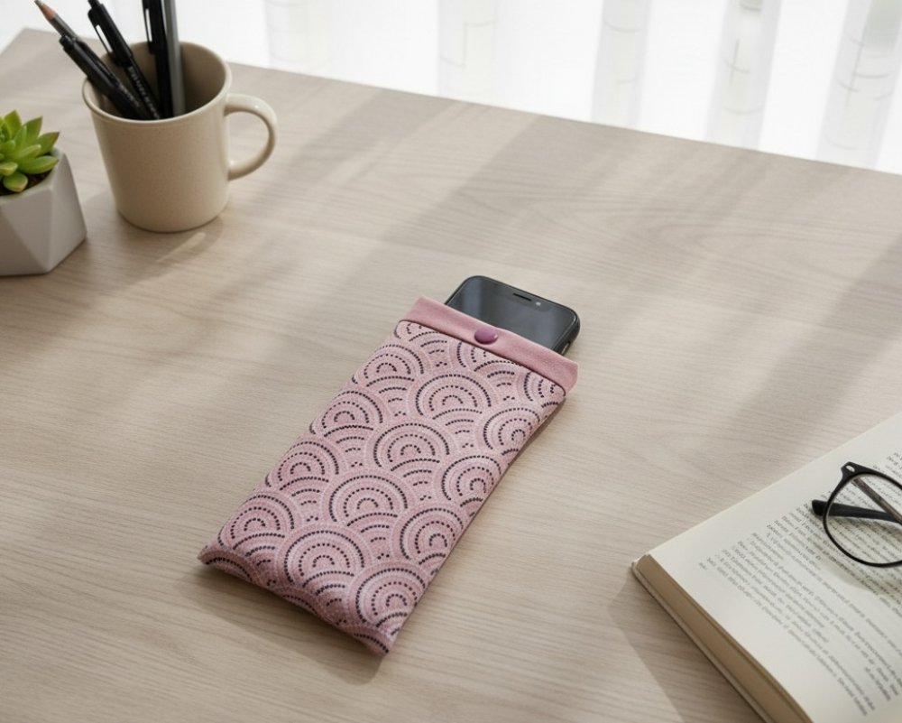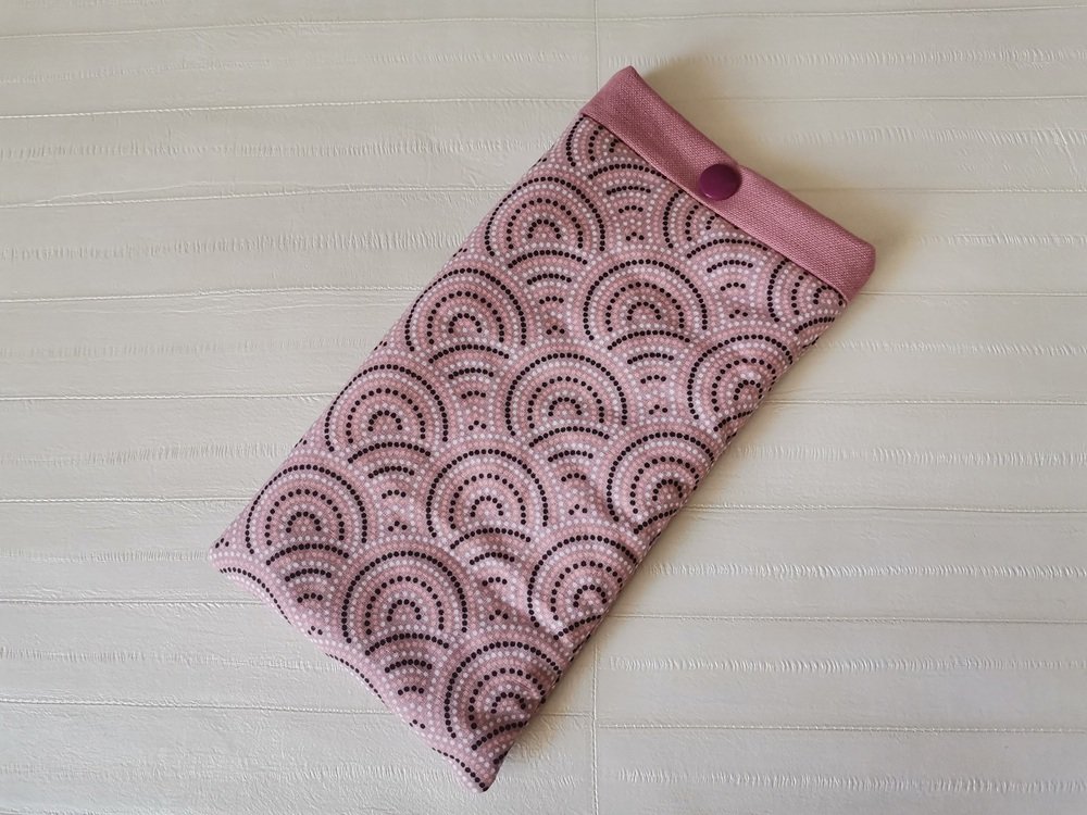 Elle est composée d'un tissu extérieur en coton certifié Oeko-Tex imprimé, un tissu intérieur en coton uni et doublée d'une fine ouate pour une meilleure protection de votre téléphone. Fermeture par bouton pression plastique (le bouton n'est pas en contact avec le téléphone).