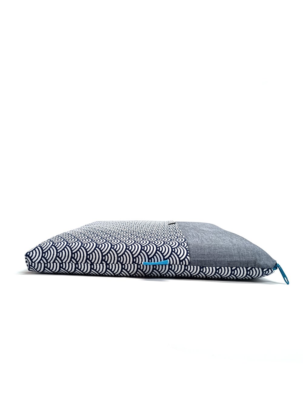 Housse avec poche frontale rembourrée antichocs, anti-rayures : motif japonais bleu