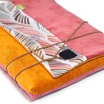 Housse rembourrée avec fermeture éclair en velours corail et moutarde : motif géométrique bohème pastel