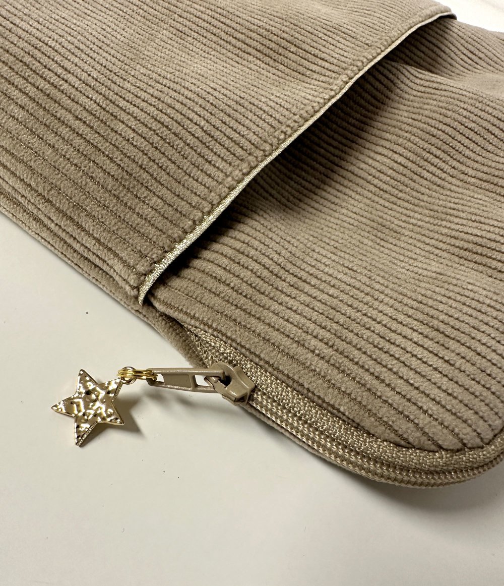 La pochette parfaite pour votre liseuse numérique ou votre tablette, en velours cotelé beige et son liseré doré! Cet étui zippé avec son ouverture élargie permet d'entrer et sortir aisément votre ebook, et sa poche avant d'y glisser le câble de chargement ou votre stylet par exemple.
