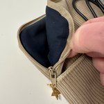 Une jolie breloque dorée est accrochée au curseur de la fermeture à glissière.
