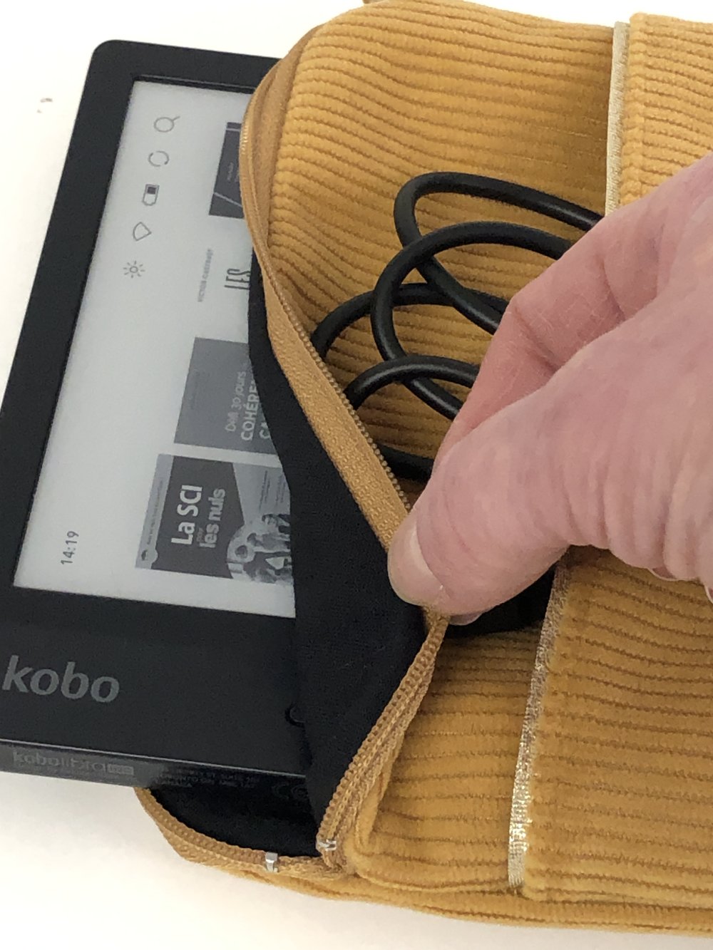 La pochette liseuse idéale votre pour liseuse numérique en velours cotelé jaune moutarde et son liseré doré! Cet étui zippé avec son ouverture élargie permet d'entrer et sortir aisément votre ebook, et sa poche avant d'y glisser le câble de chargement ou votre stylet par exemple.