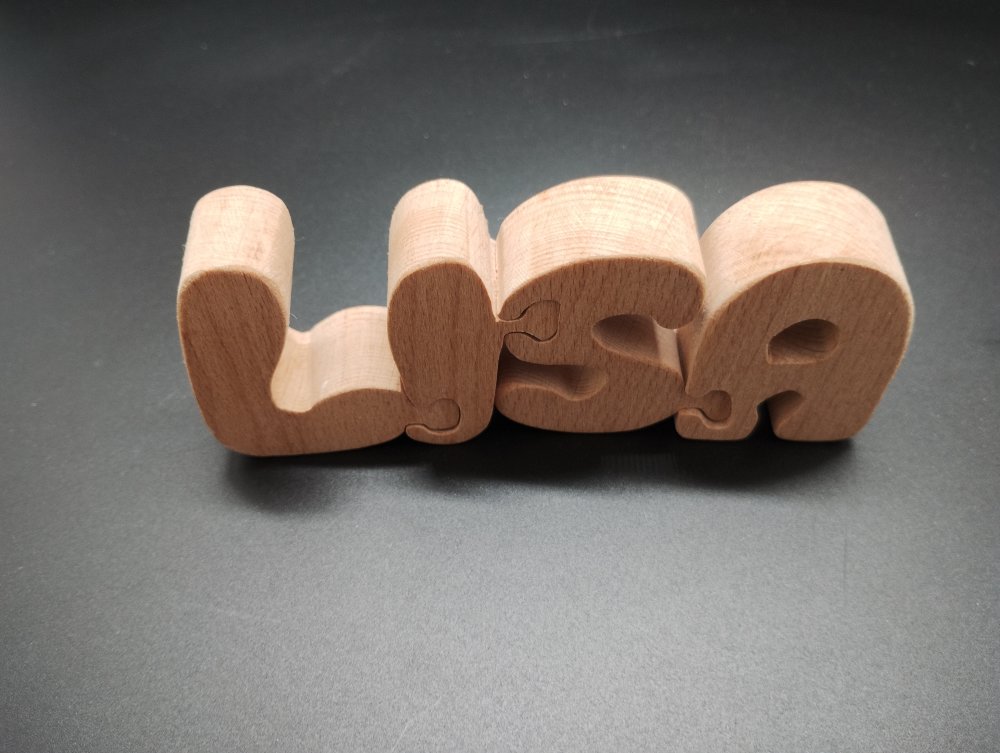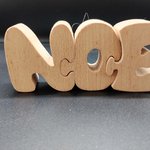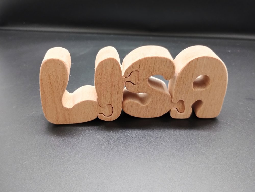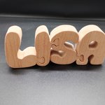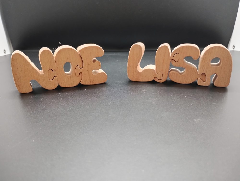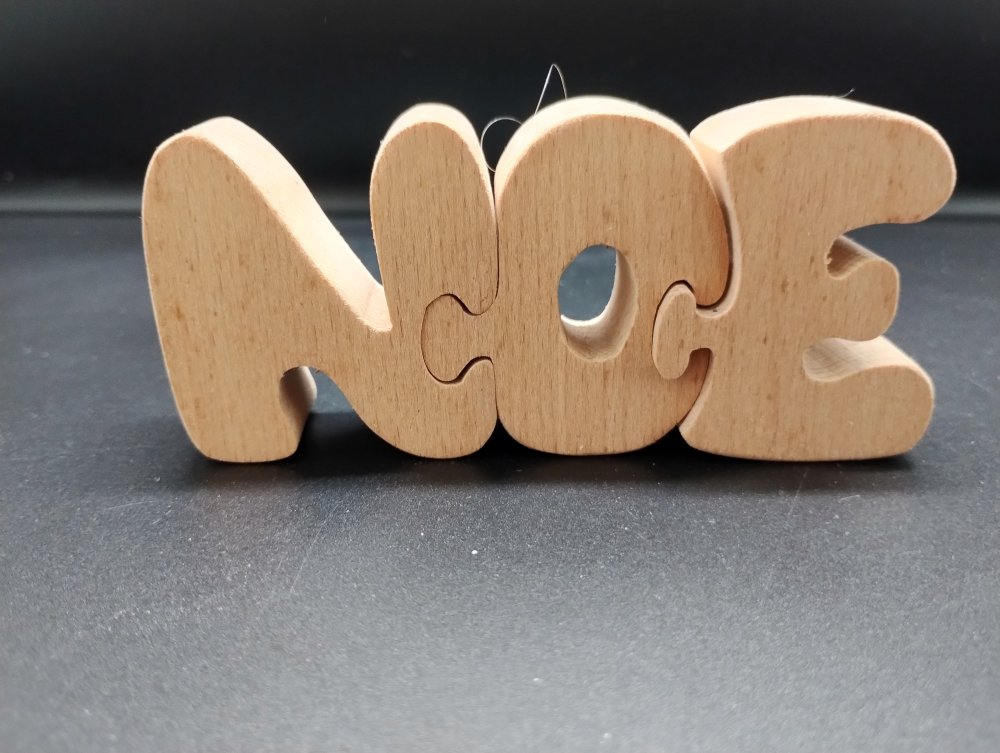 puzzle prénom en hêtre chantourné, poncé et verni à la main