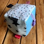 C 'est un classique du jeux d'éveil, ici sur le thème des nuages et etoile, Il est composé de 6 faces de tissu de differentes textures