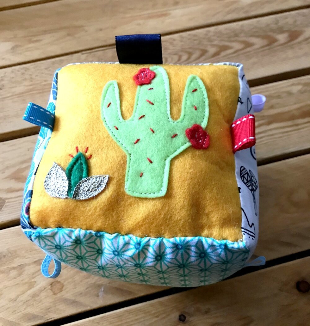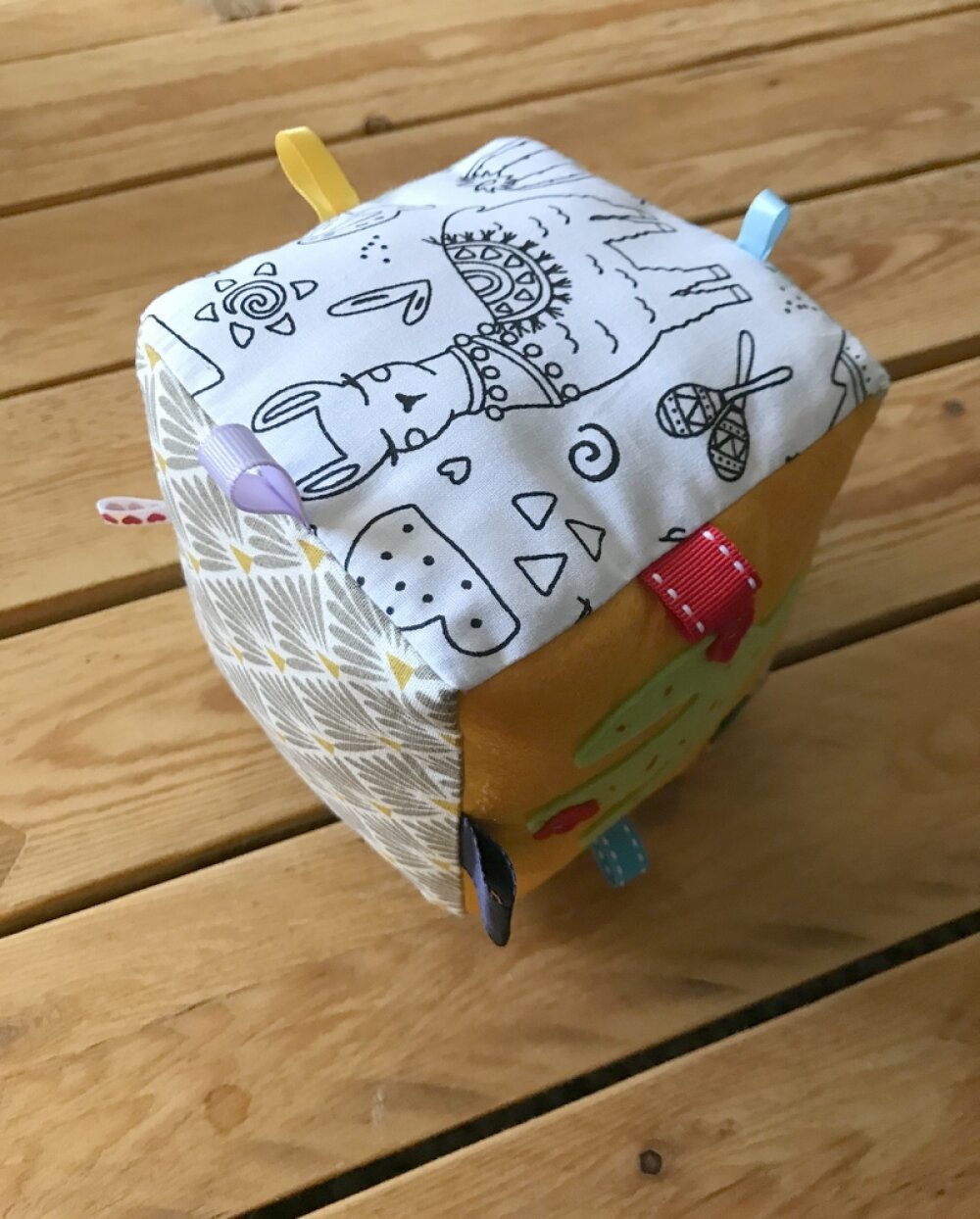 Cube de préhension lama et cactus, jouet en tissu, jeux de manipulation, cube tissu, jouet montessori