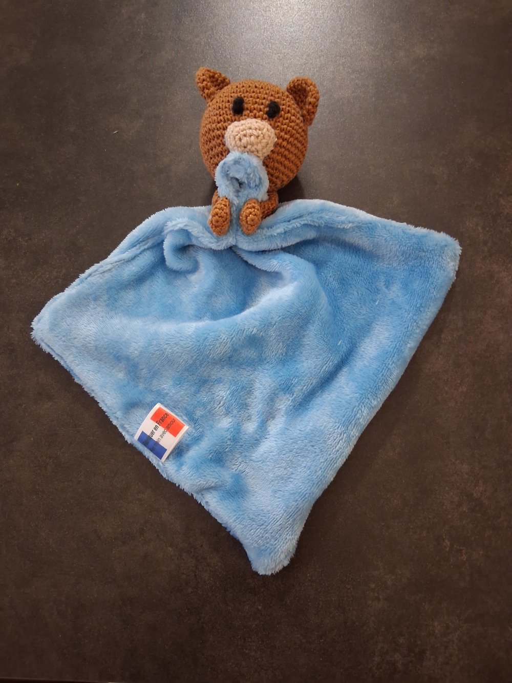 Voici mon dernier bébé : un ourson trop mignon + une couverture ultra douce pour accompagner les tout-petits.