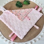 Un coté tout doux en tissu minky de couleur rose ,l'autre face en coton certifié Oeko-Tex imprimé ,