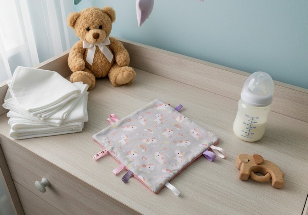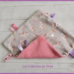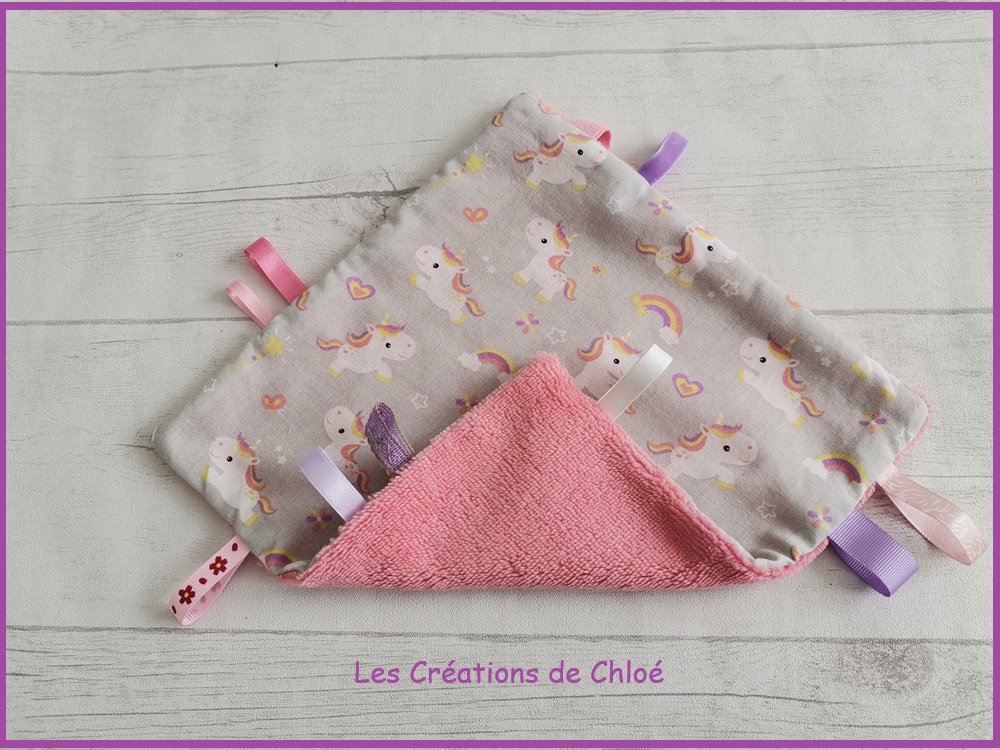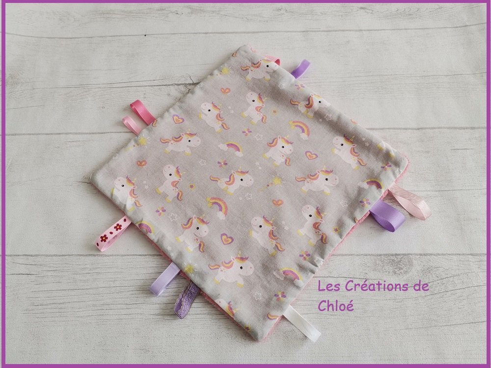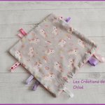 Doudou carré étiquettes parfait pour l'éveil de bébé .