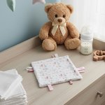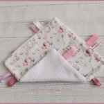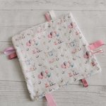 Doudou carré étiquettes parfait pour l'éveil de bébé .