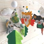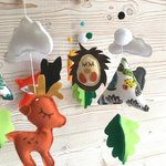 mobile bébé animaux de la forêt" suspension de berceau, déco chambre bébé,tipis nuages et pompons.