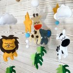 mobile bébé animaux de la savane" suspension de berceau", déco chambre bébé,nuages, étoiles et pompons