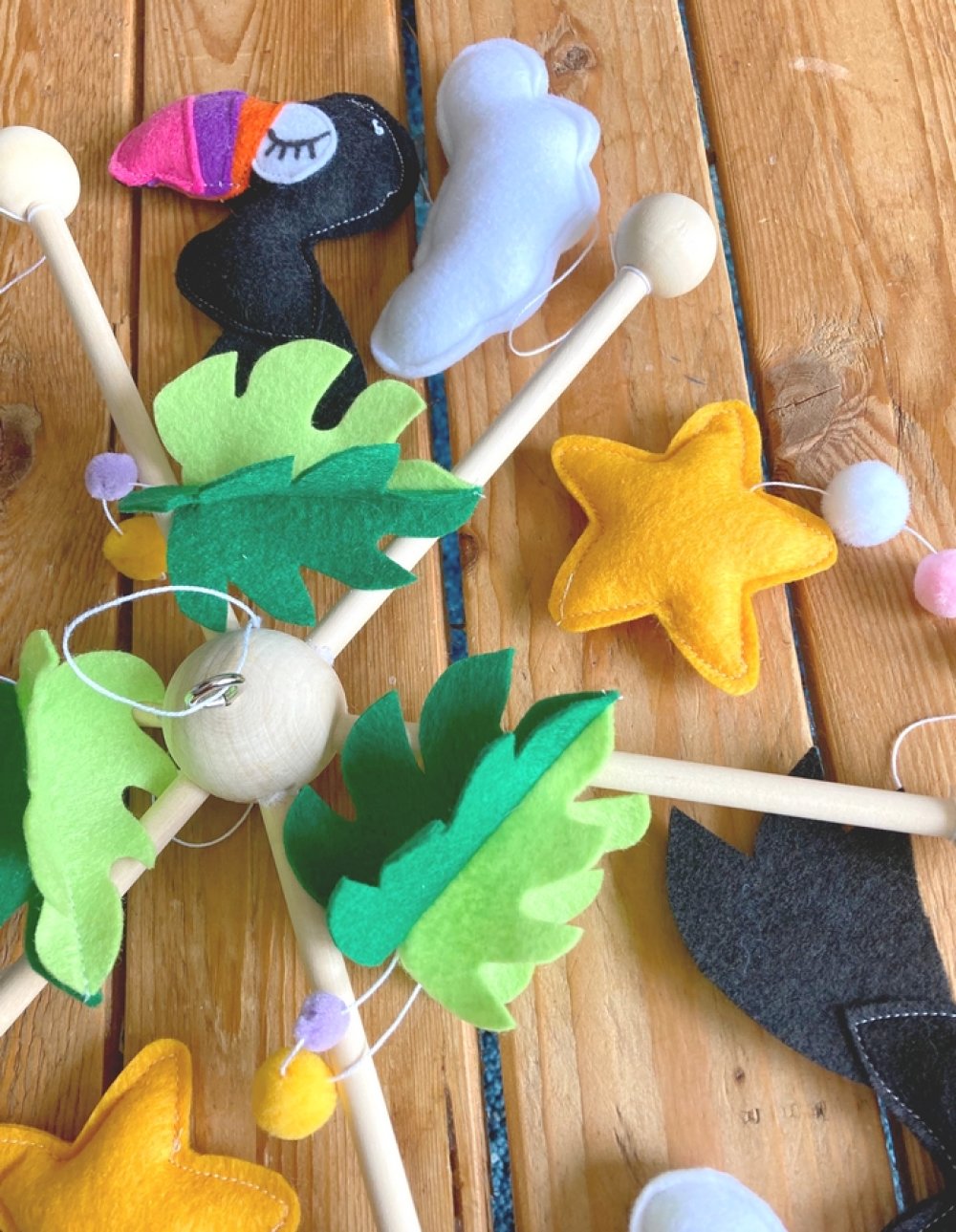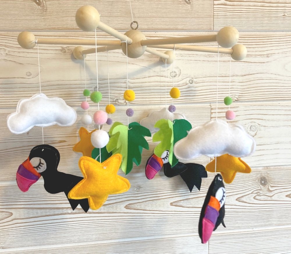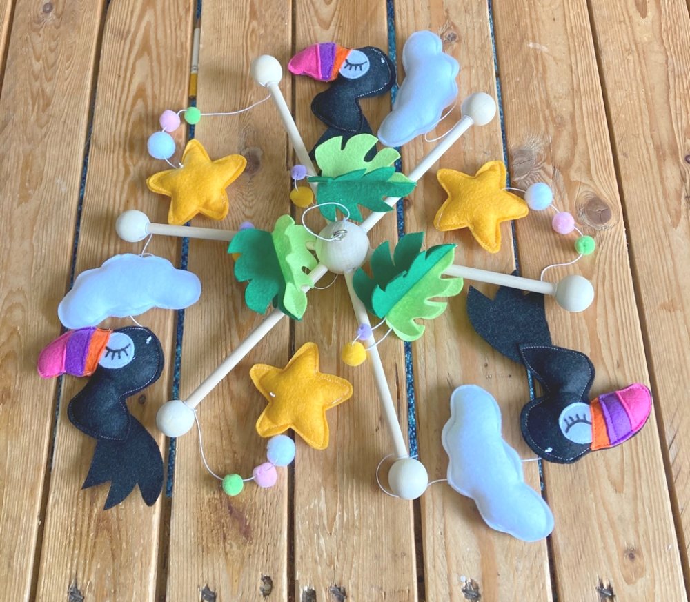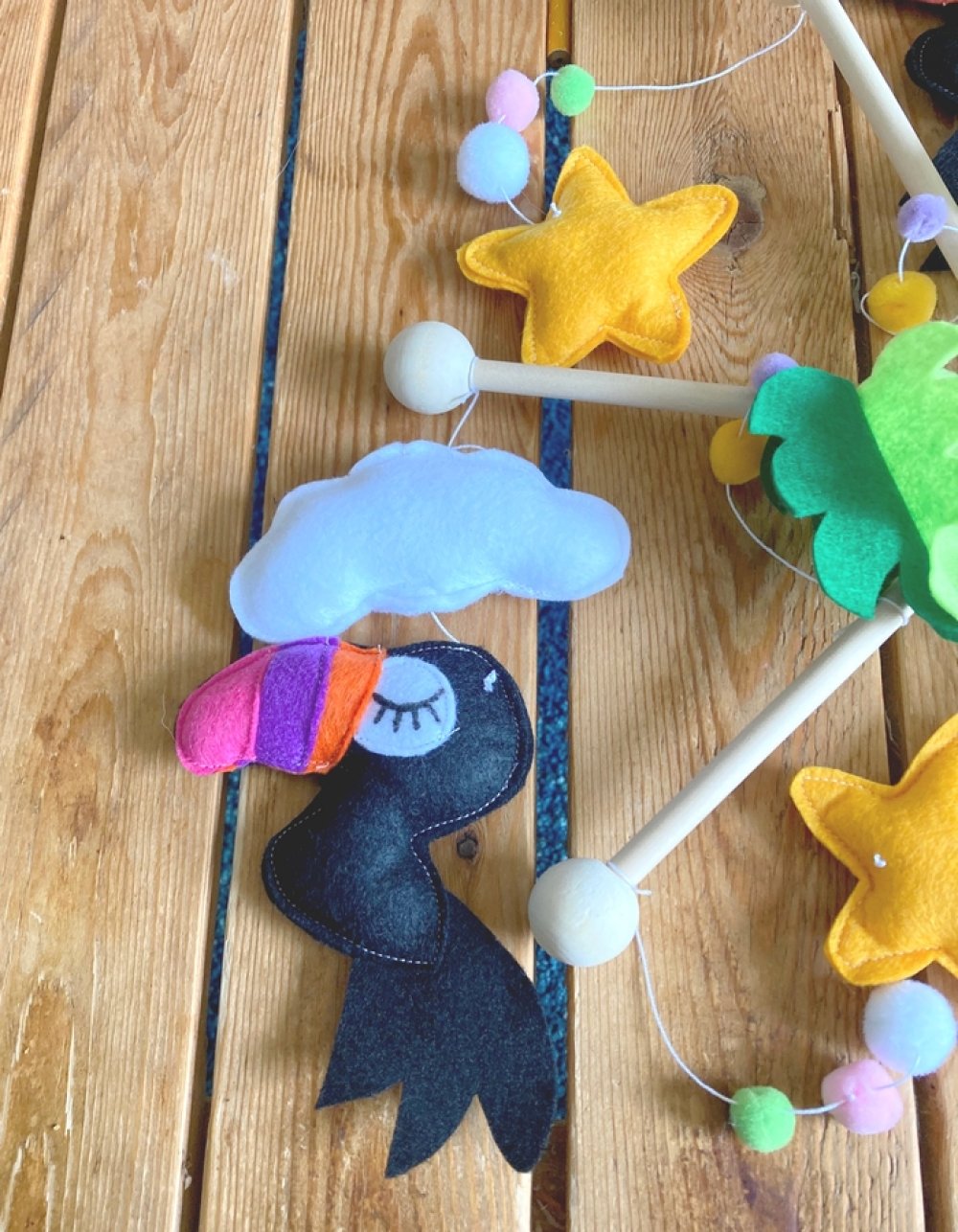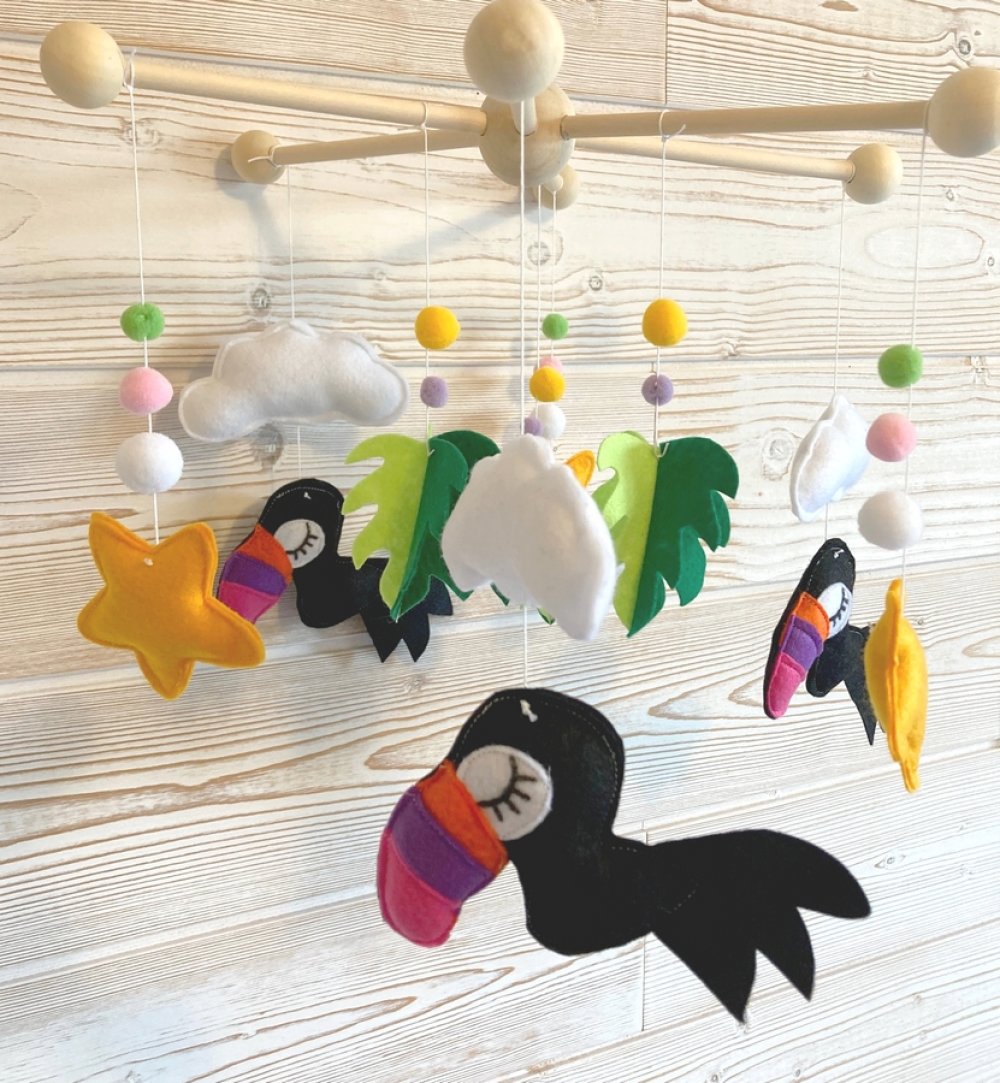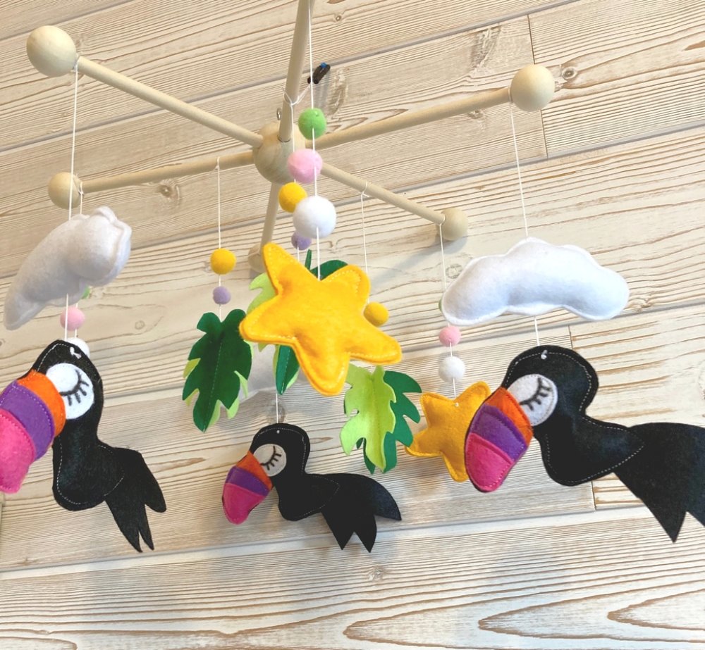 mobile bébé, mobile toucan, suspension de berceau, déco chambre bébé, suspension deco, mobile jeux