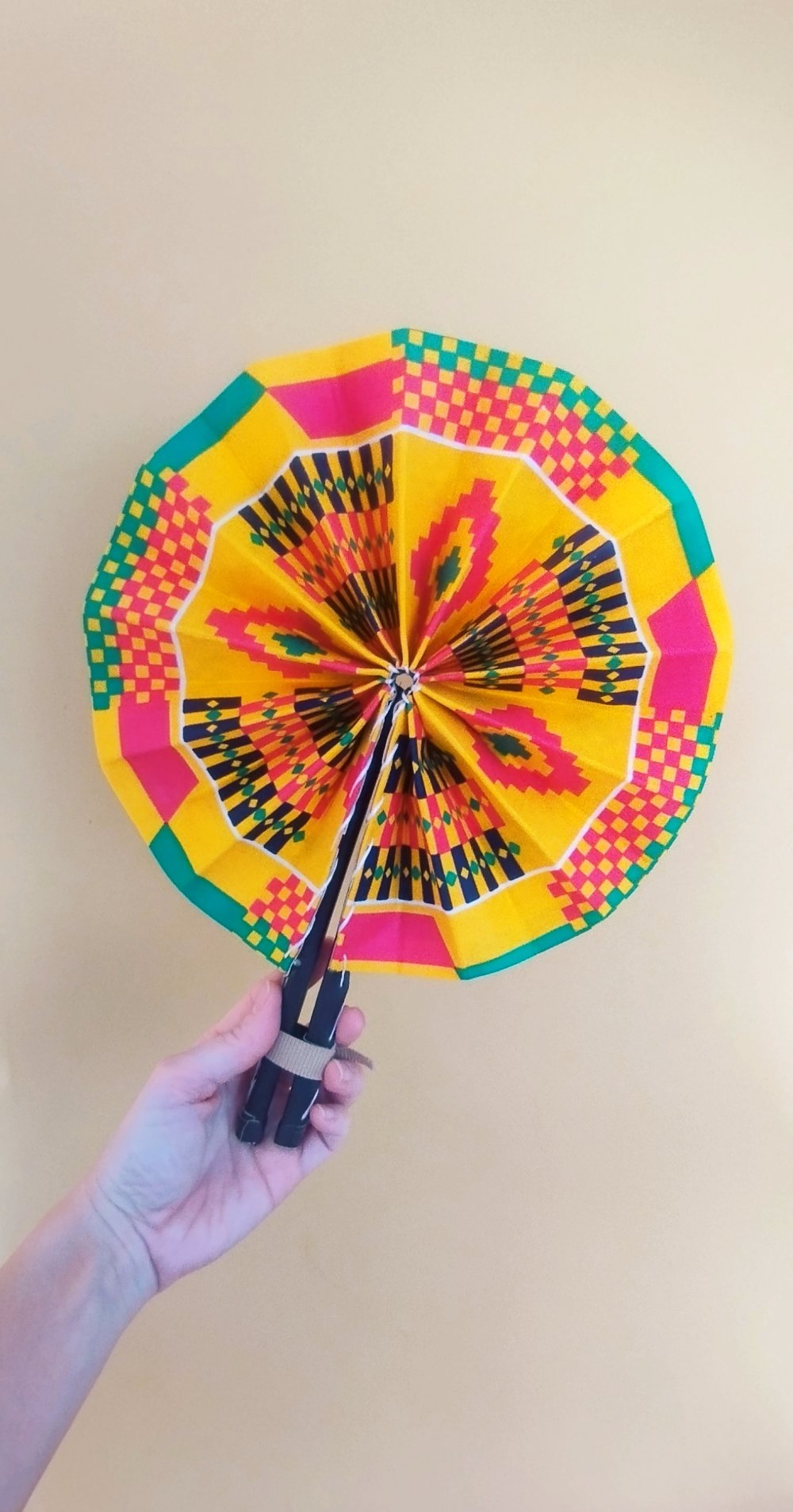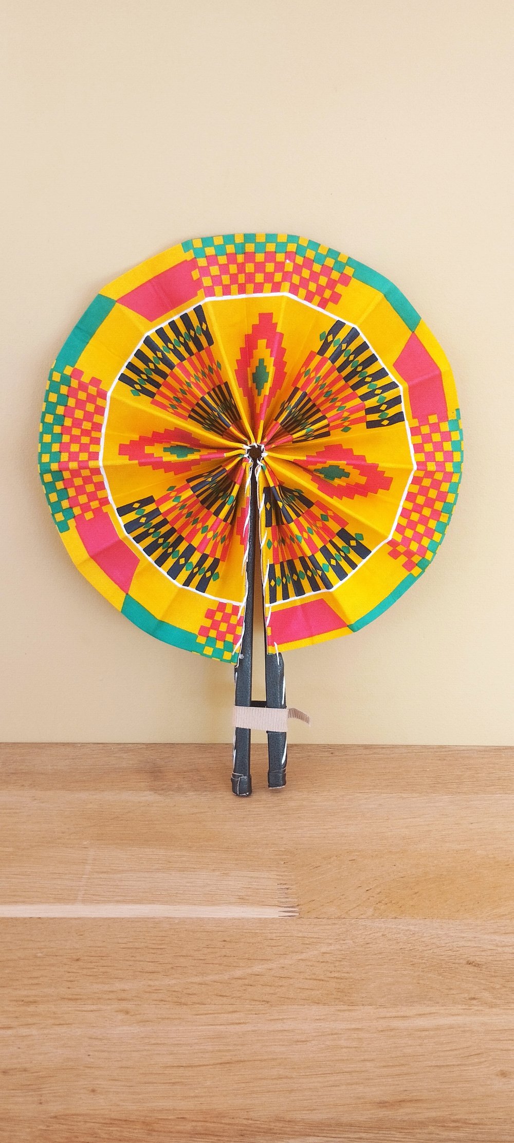 Alliant tradition africaine et élégance contemporaine, l’éventail rond en tissu wax est bien plus qu’un simple accessoire.