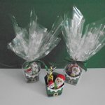 Cette boîte est emballé avec du papier d'emballage cellophane motif flocons et fermé par un ruban de satin vert.