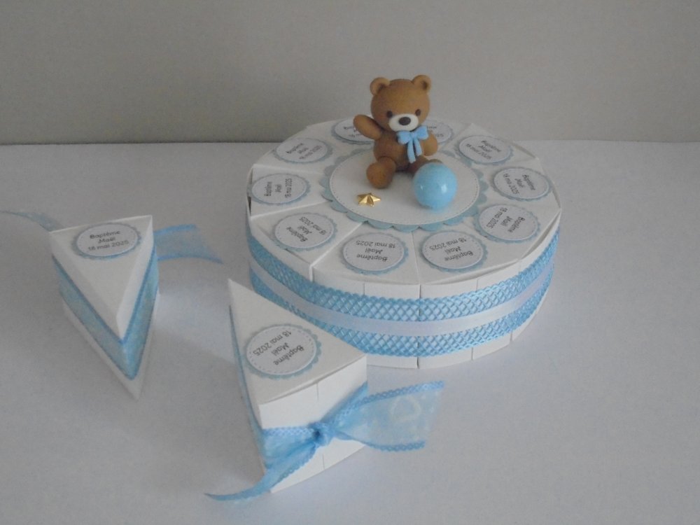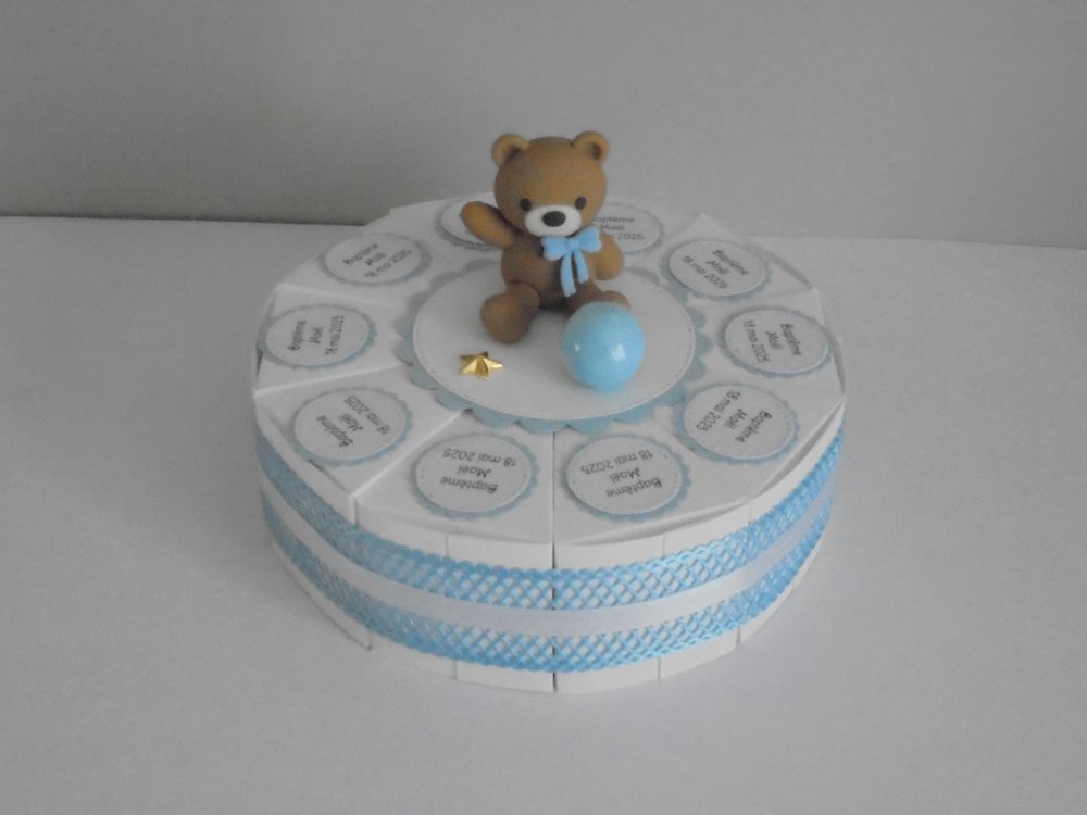 Boîtes à dragées pour un Baptême en forme de petit gâteau