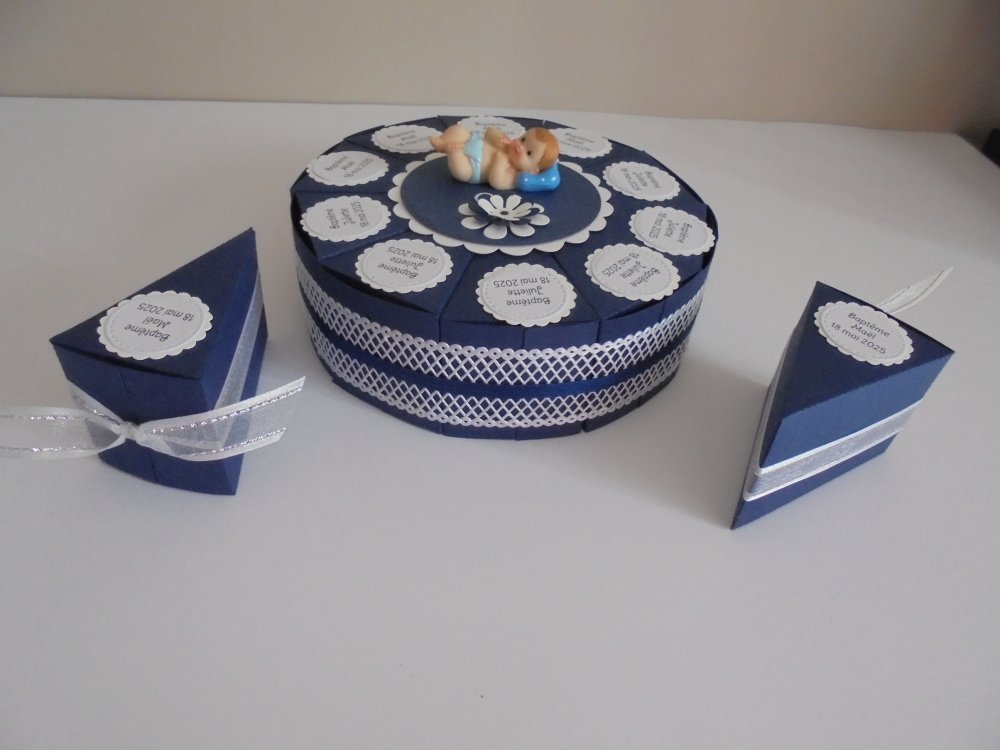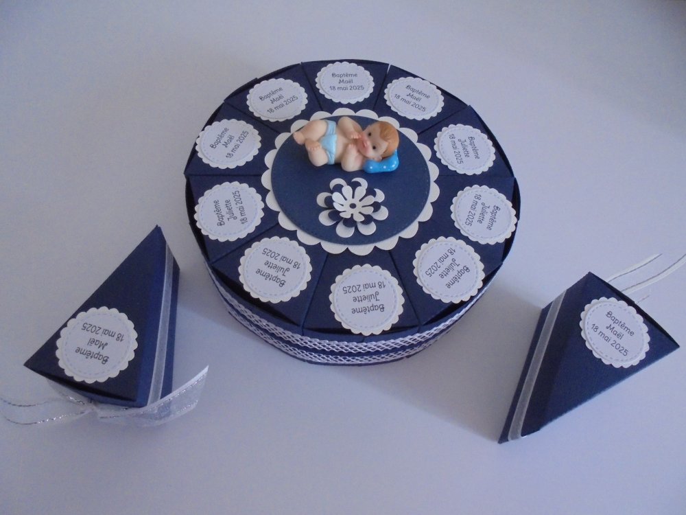 Boîtes à dragées pour un Baptême en forme de petit gâteau