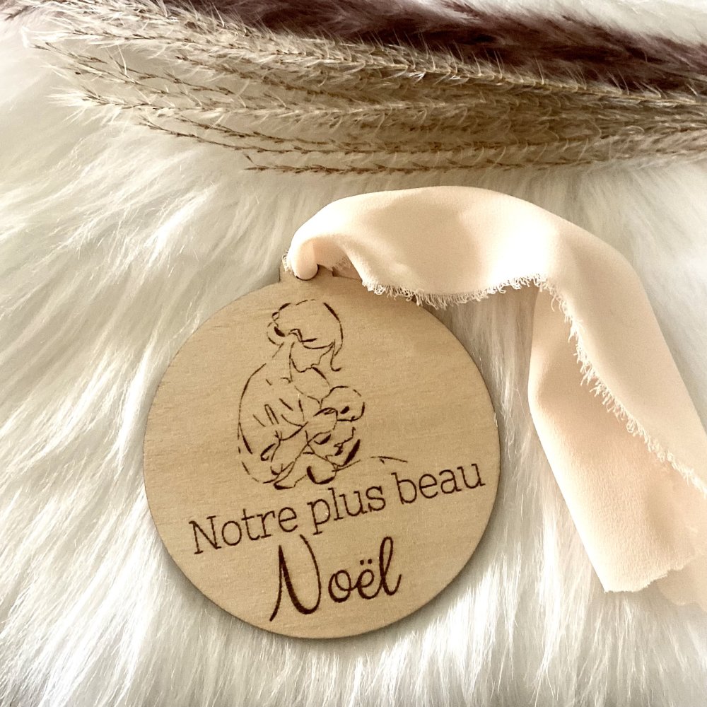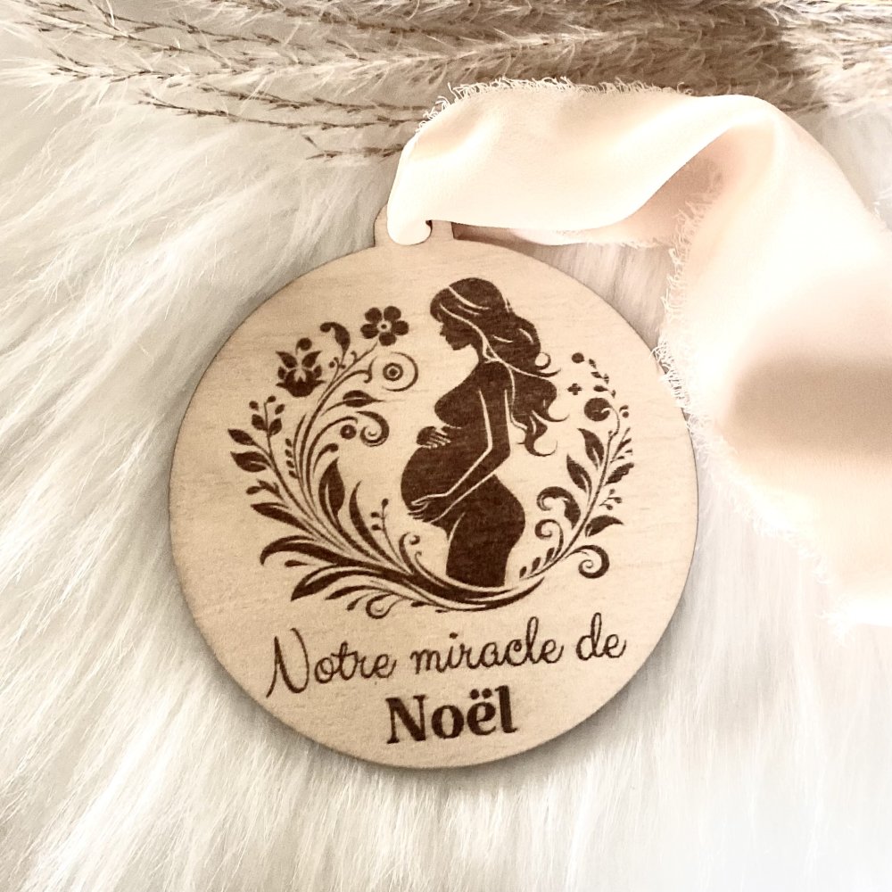 Boule de Noel en bois pour annoncer la grossesse de façon originale et élégante