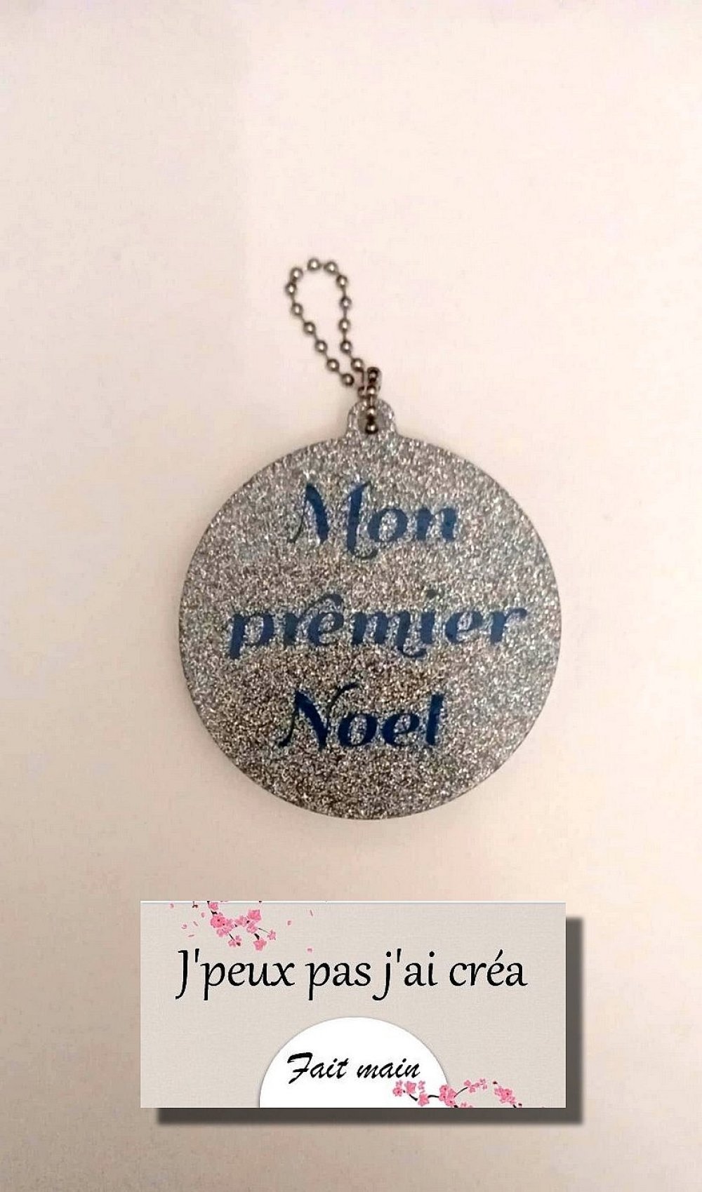 Boule de noël en résine époxy gris holographique "MON PREMIER NOËL "