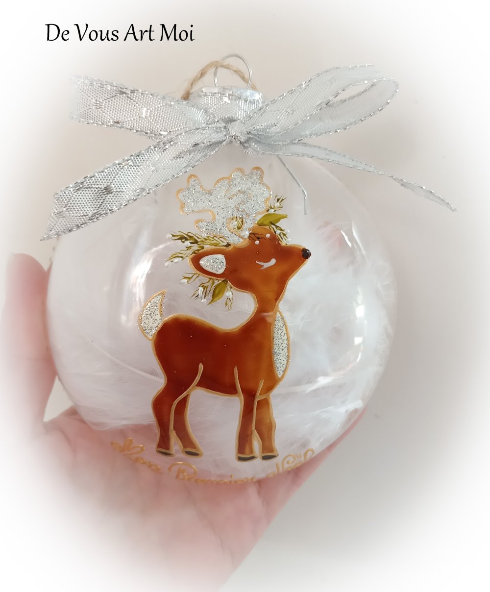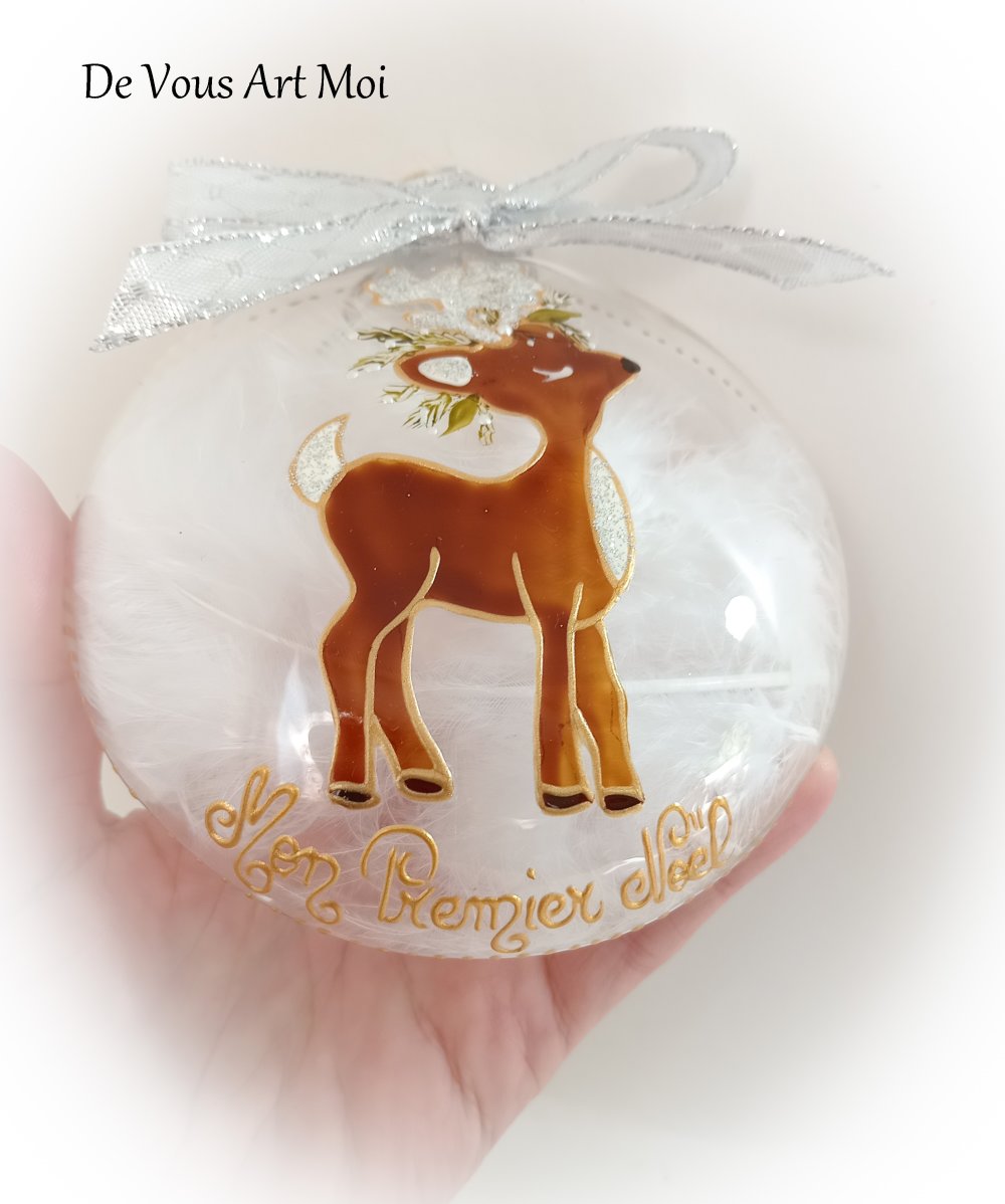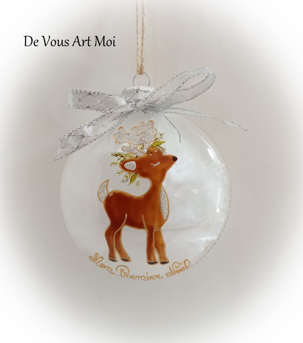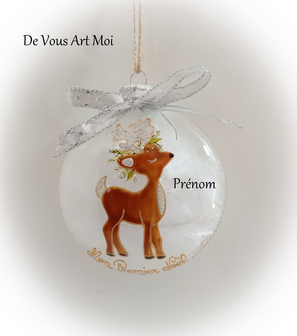 Boule de noël personnalisée naissance renne de noël verre originale peinte main artisanale