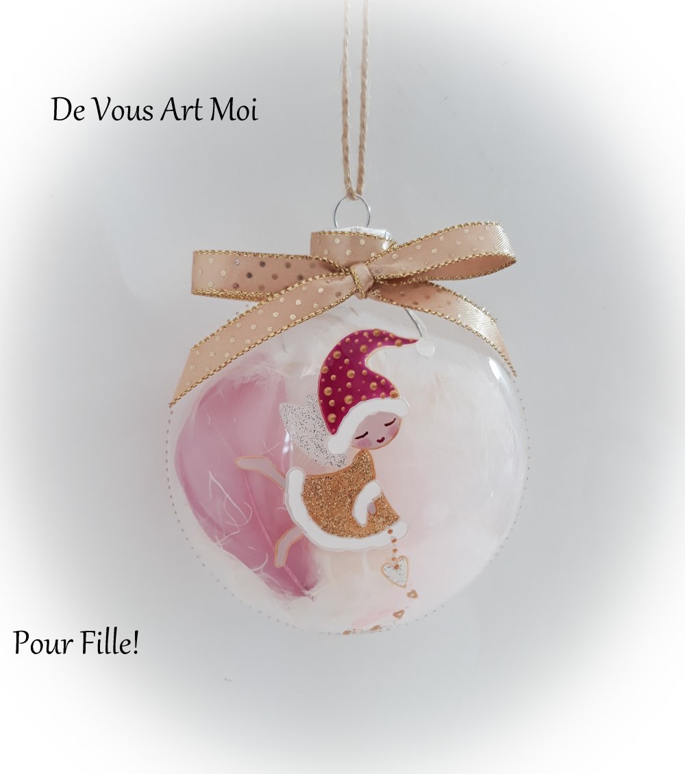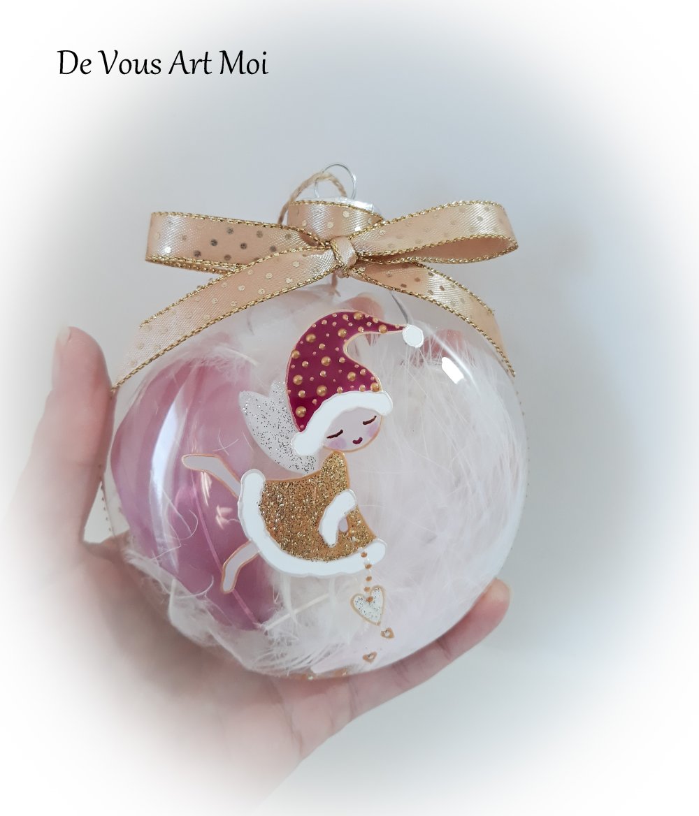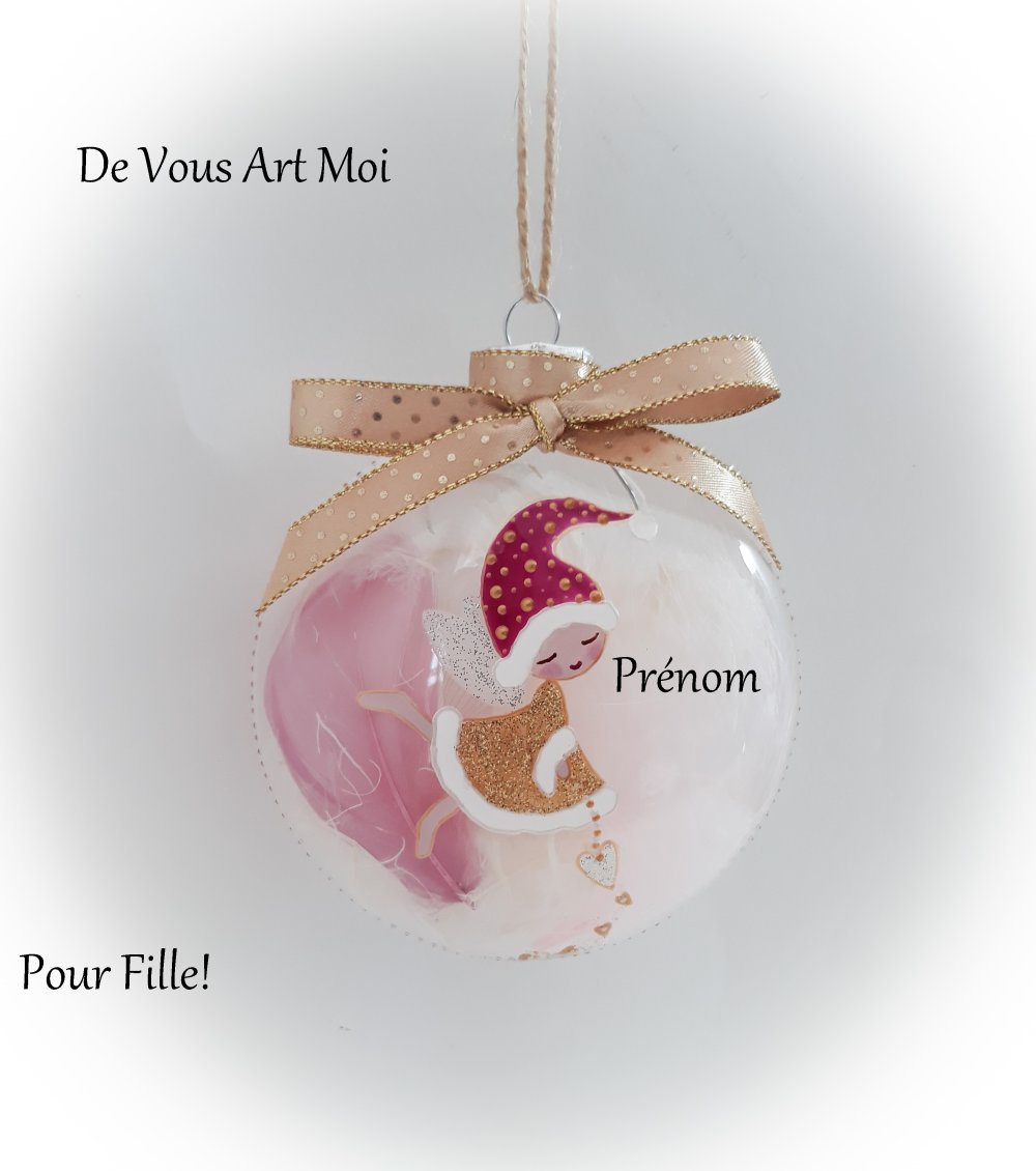 Boule sapin noël fille prénom personnalisée peinte main illustration fée de noël lutine