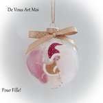 Boule verre personnalisée prénom fille Noël boule Noël illustrée dessin original boule noël personnalisable colorée fait main fée elfe lutine peinte main