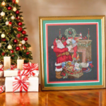 Réalisé avec soin en broderie sur une toile noire, ce cadre évoque la magie et la convivialité de la saison de Noël. Le temps passé sur cette création n’a pas été précisément calculé, mais il a été étalé sur 14 mois, témoignant de l’attention et de la patience apportées à chaque détail.