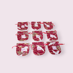 Le calendrier de l'Avent bordeaux : 24 petits pochons à garnir et à accrocher.
