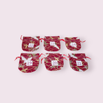 Ils sont cousus dans un coton rouge bordeaux, de forme bourse, très original...