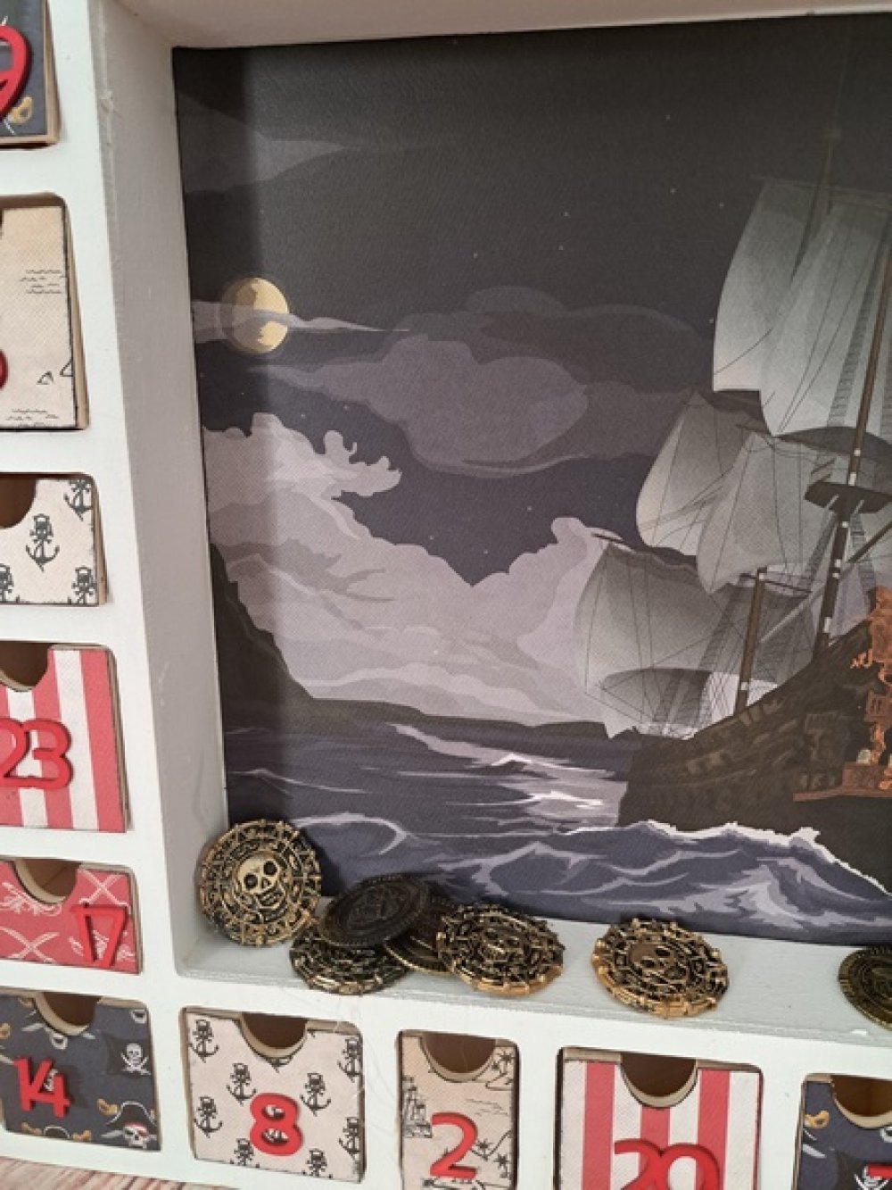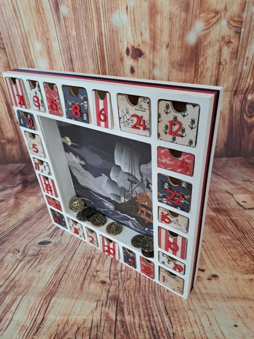 Prêt à embarquer dans une aventure palpitante en attendant Noël ? 🏴☠️ Avec ce calendrier de l'Avent en bois sur le thème des pirates, transformez chaque jour de décembre en une chasse au trésor remplie de surprises !