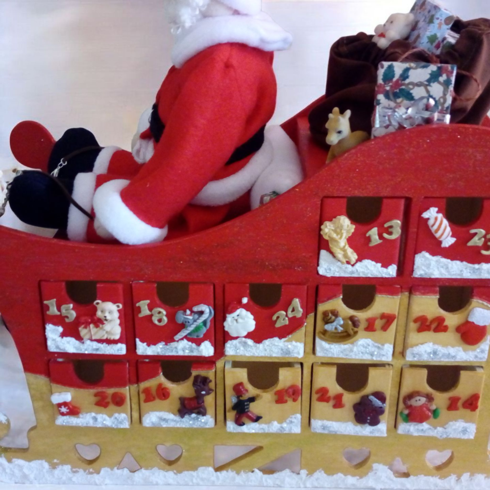 calendrier de l'avent, calendrier bois, traineau de Noël