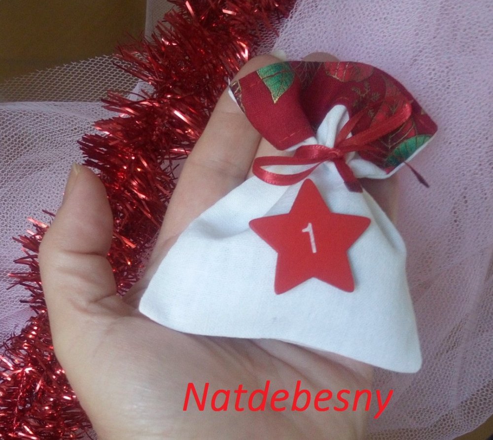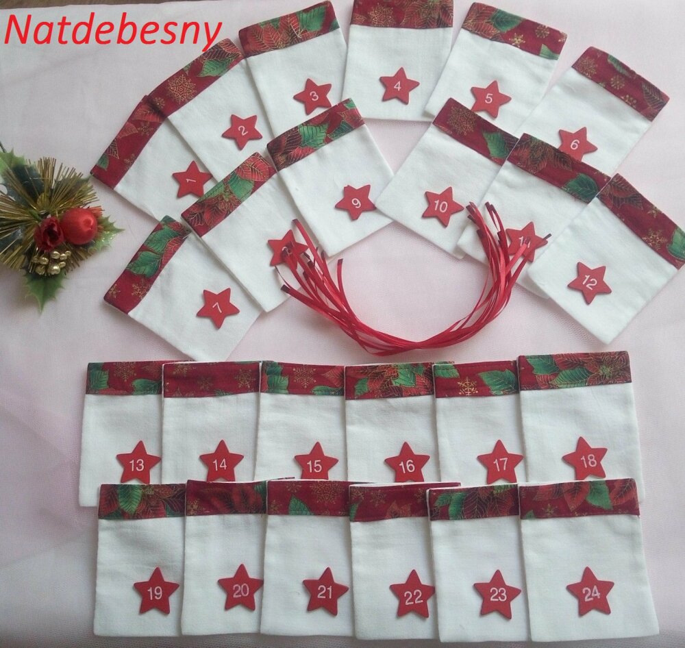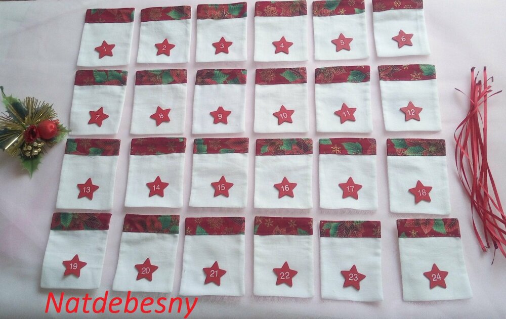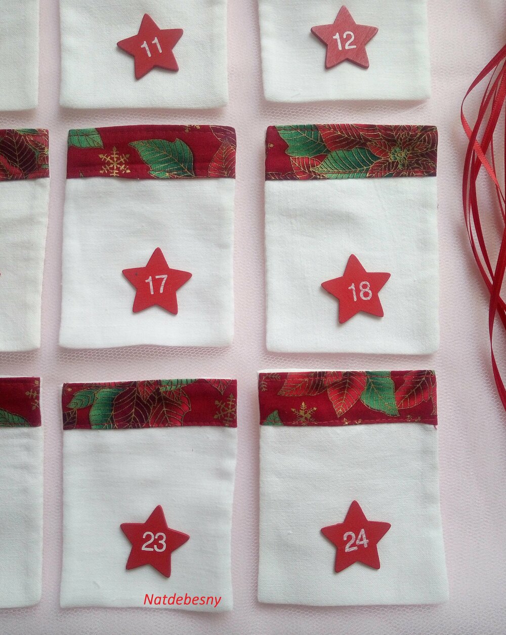 Calendrier de l'Avent personnalisable en tissu blanc et rouge - Faites plaisir à vos proches!