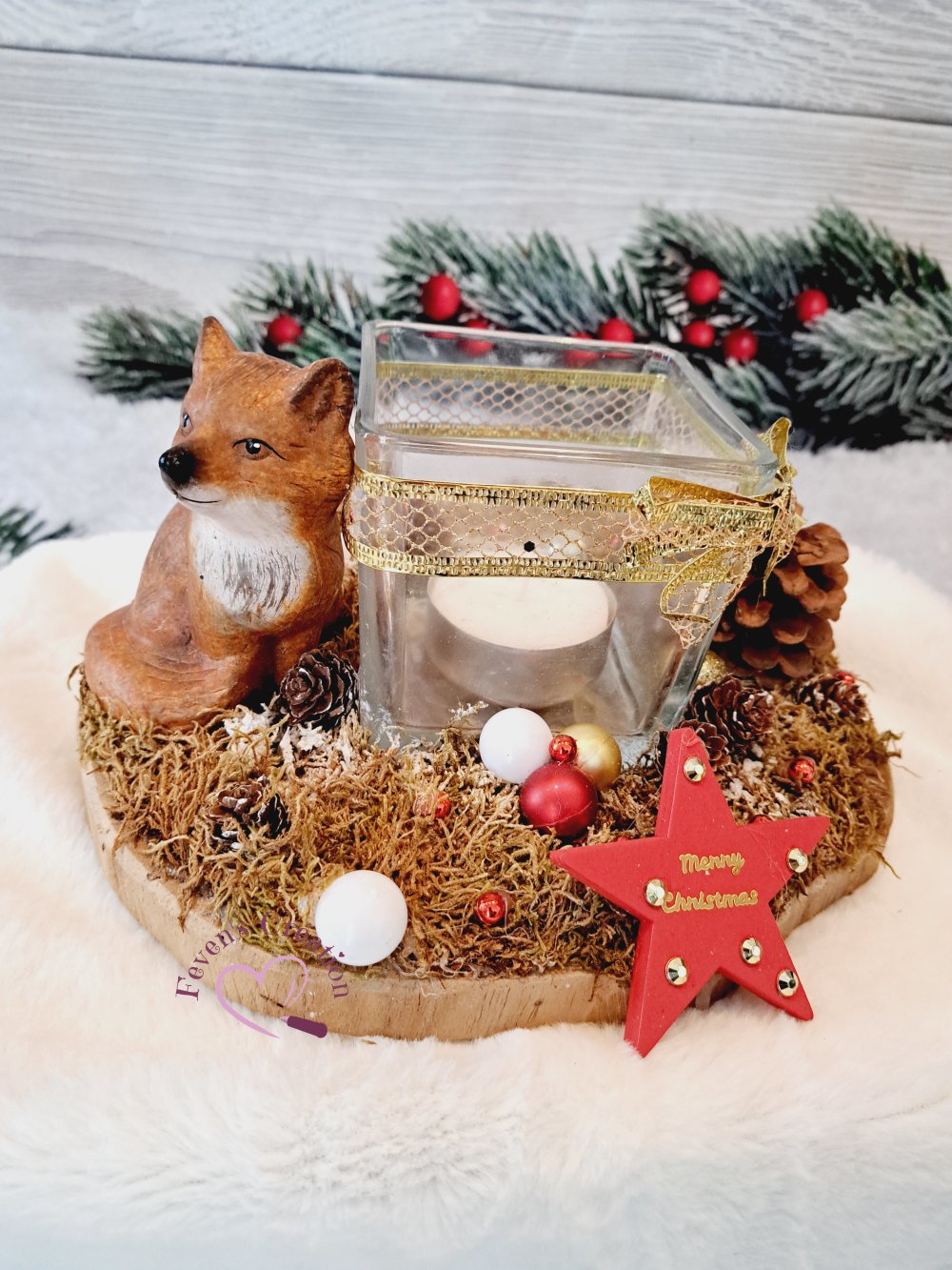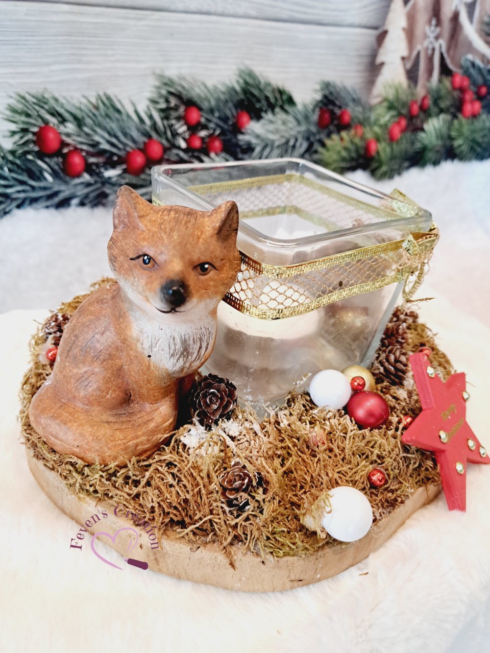 Centre de table Noël - Jour de l'an / décoration de table ou autre avec Bougeoir et renard