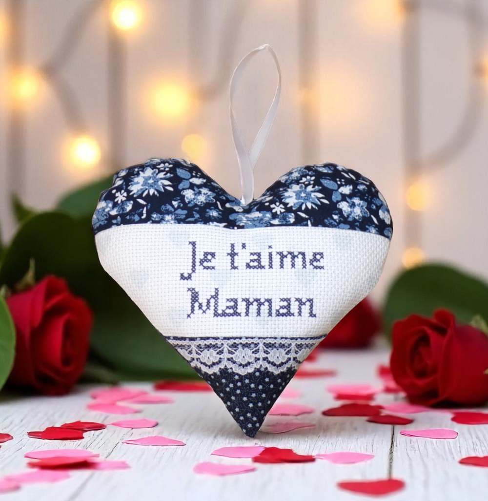 A l'occasion de la fête des mamans, je vous propose un grand cœur brodé main "Je t'aime Maman".