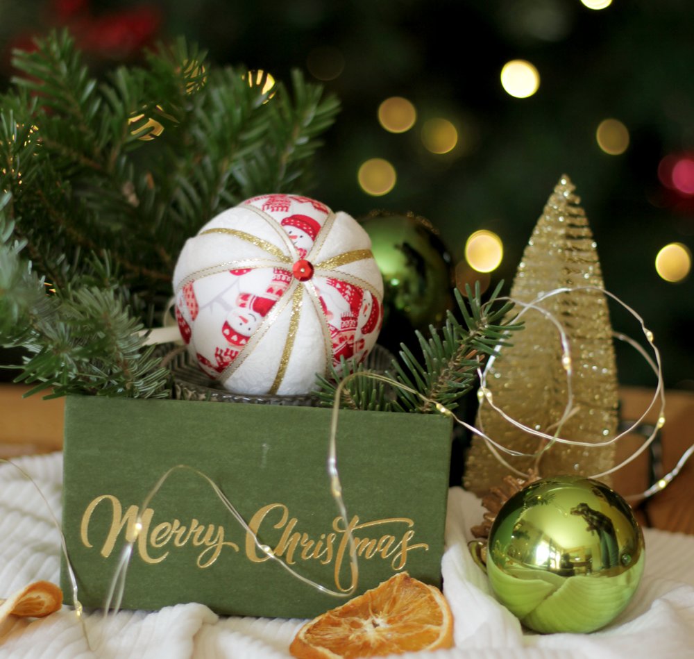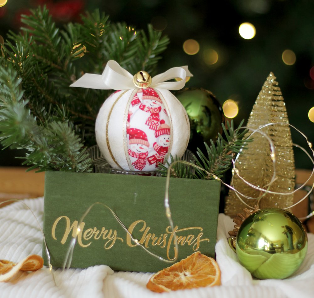 Nous réalisons nos boules de Noël à la main, à partir de tissus sélectionnés dans nos magasins préférés, de rubans et petits apprêts. Le support utilisé en polystyrène rend les boules légères et incassables - pas de soucis pour les chutes ! Attentives aux finitions, nous vous garantissons des boules raffinées et délicates. Attention toutefois, ces décorations ne sont pas des objets destinés aux enfants.