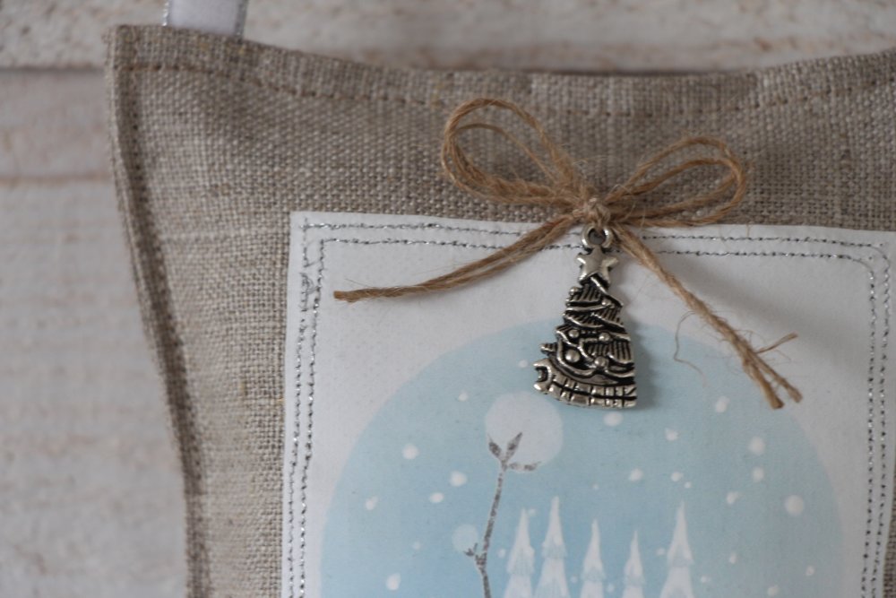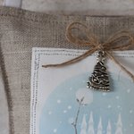- Dentelle - Ficelle de chanvre - Breloque argenté en forme de sapin