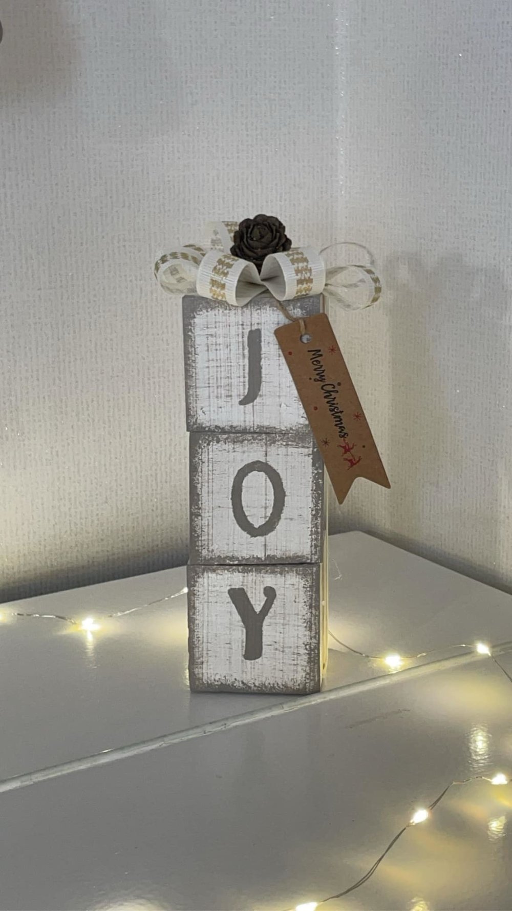 Je vous propose cette création composée de 3 cubes en bois patinés en taupe et blanc.