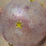 Passage au vernis spray satiné et quelques touches de paillettes dans les tons rose et mauve. Passage de colle permanente pour fixer le tout.