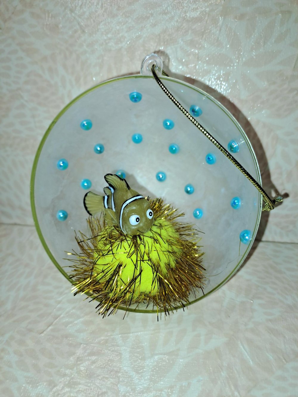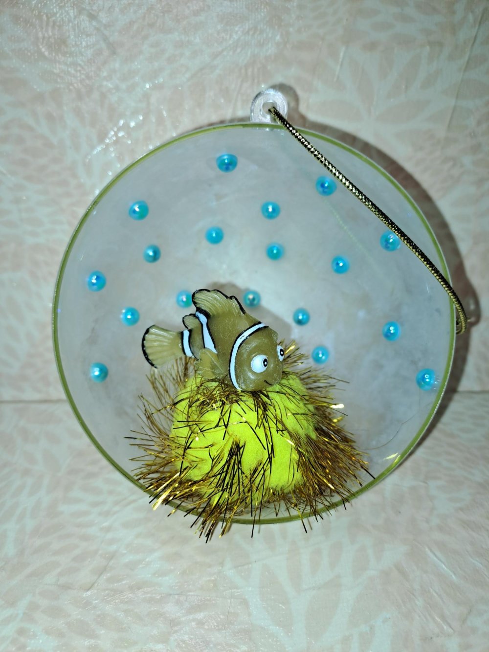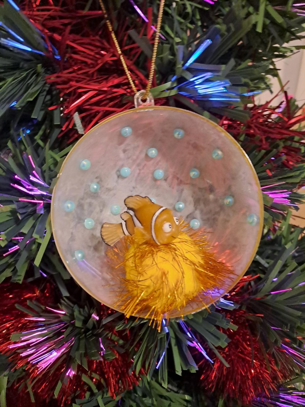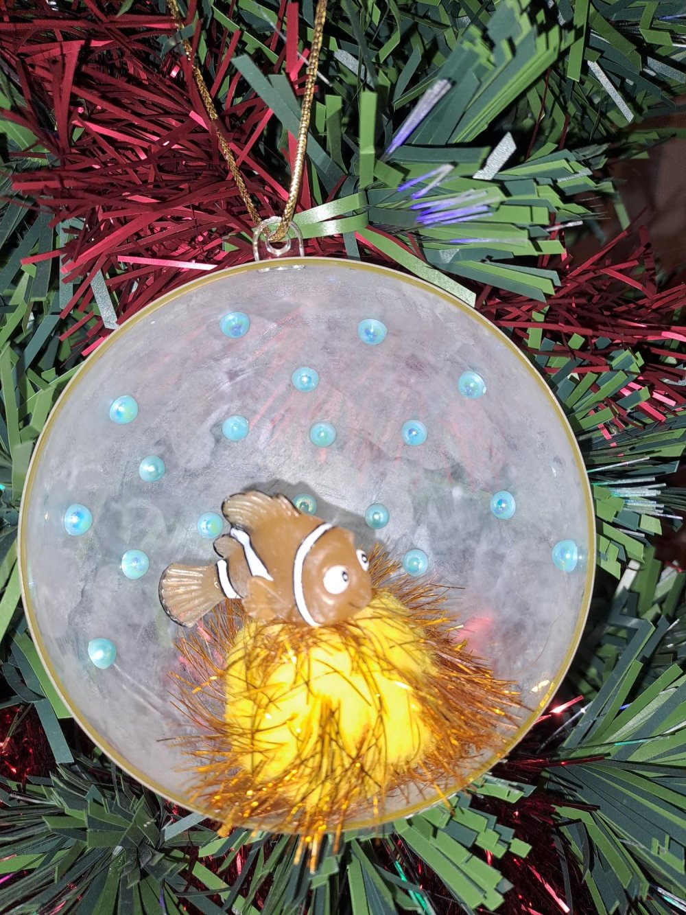 Demi-boule de Noël avec une figurine d'occasion Disney de Nemo du film "Le monde de Nemo".