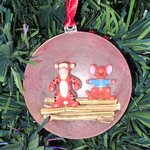 Demi-boule de Noël avec deux figurines d'occasion Disney de Tigrou et Petit Gourou du film "Winnie l'ourson".
