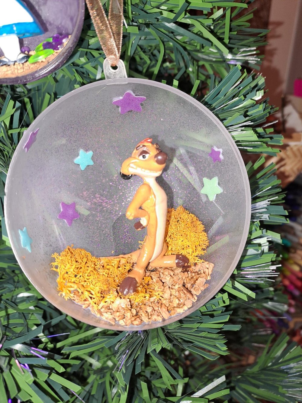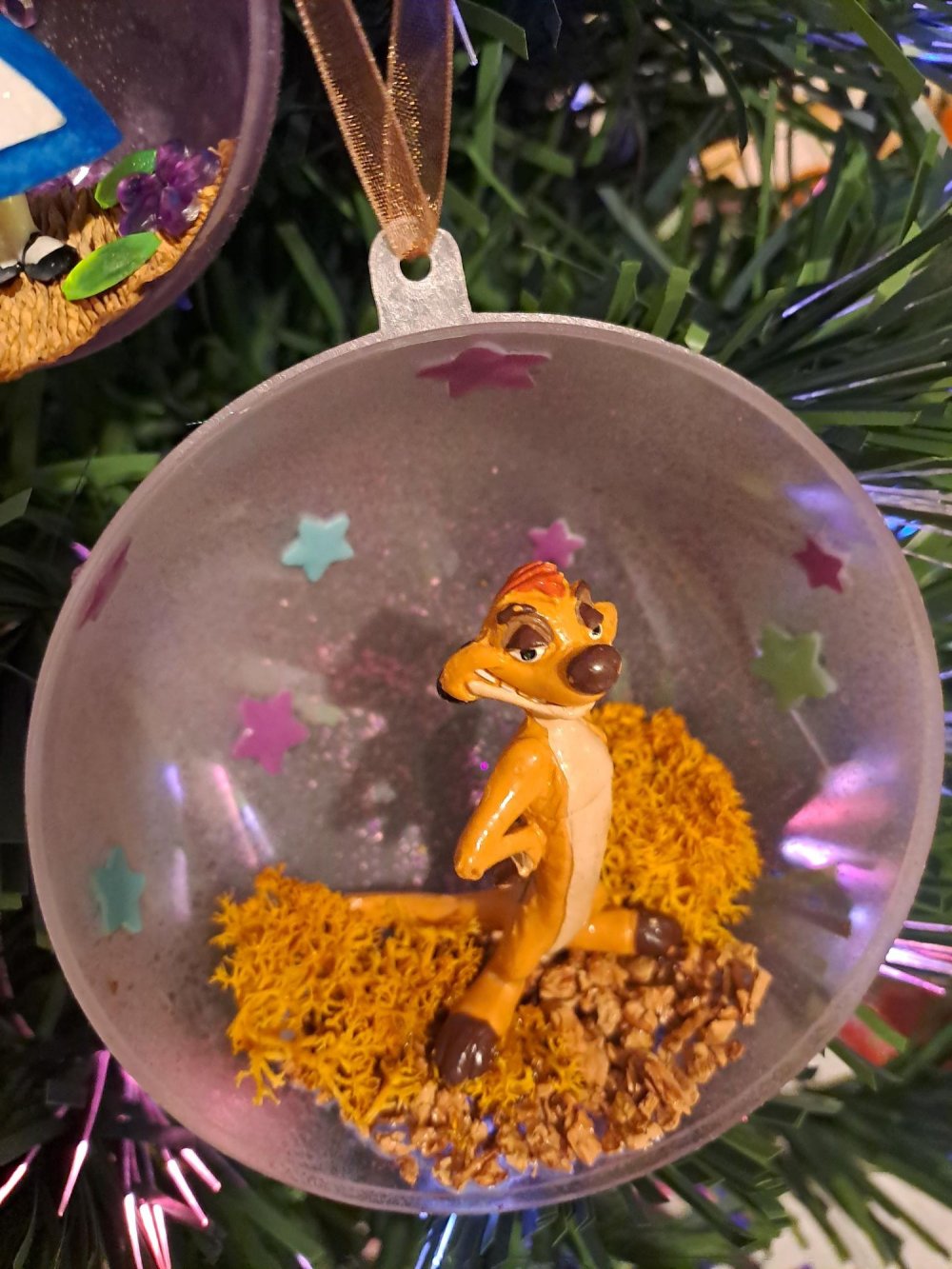 Demi-boule de Noël avec une figurine d'occasion Disney de Timon du film "Le Roi Lion".
