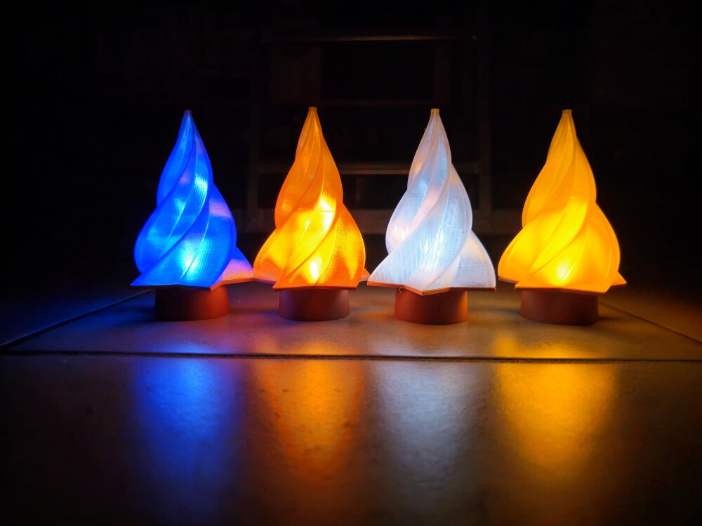 Chaque pièce est imprimée en 3D avec un filament de haute qualité, puis soigneusement assemblée à la main pour garantir un rendu unique. Leur lumière douce et apaisante, aux tons orange et bleu vibrants, crée une atmosphère féérique parfaite pour les soirées d’hiver.
