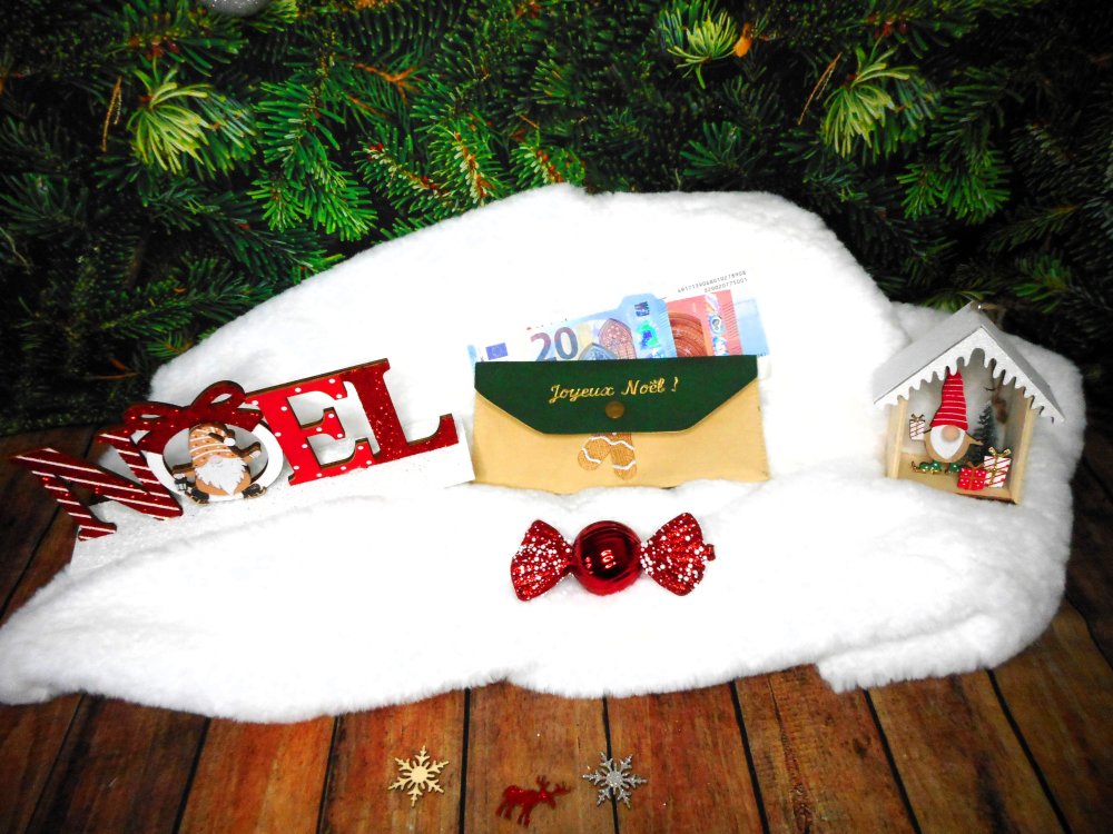 Cette pochette permet de remplacer les enveloppes en papier, lorsque vous offrez de l'argent liquide, un chèque cadeau ou un chèque, elle est réutilisable, vous pouvez par la suite y ranger des petits bijoux, des papiers, elle peut aussi servir de décoration pour les Noëls suivant.