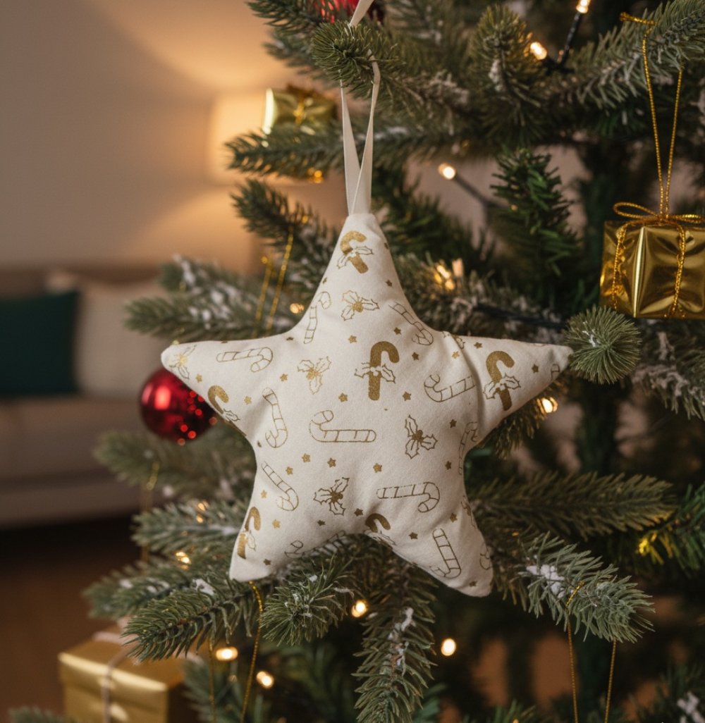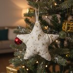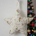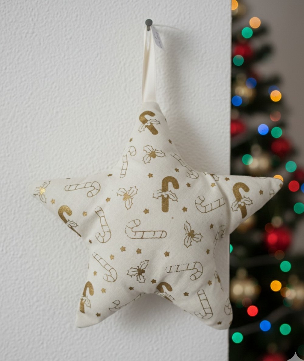 Etoile de noël à suspendre en tissu coton beige motifs dorés