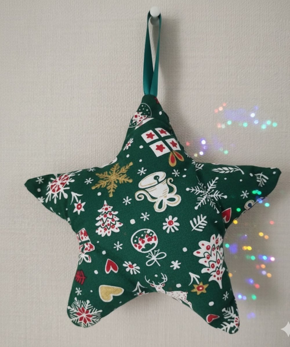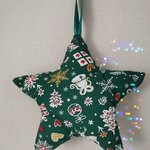 Etoile de noël à suspendre en tissu coton vert motif divers