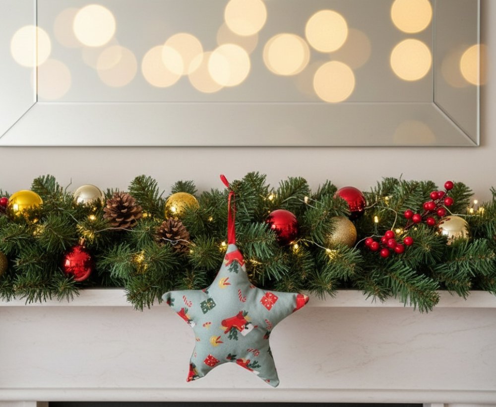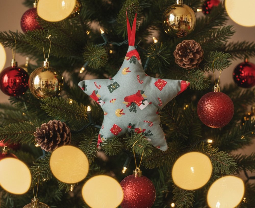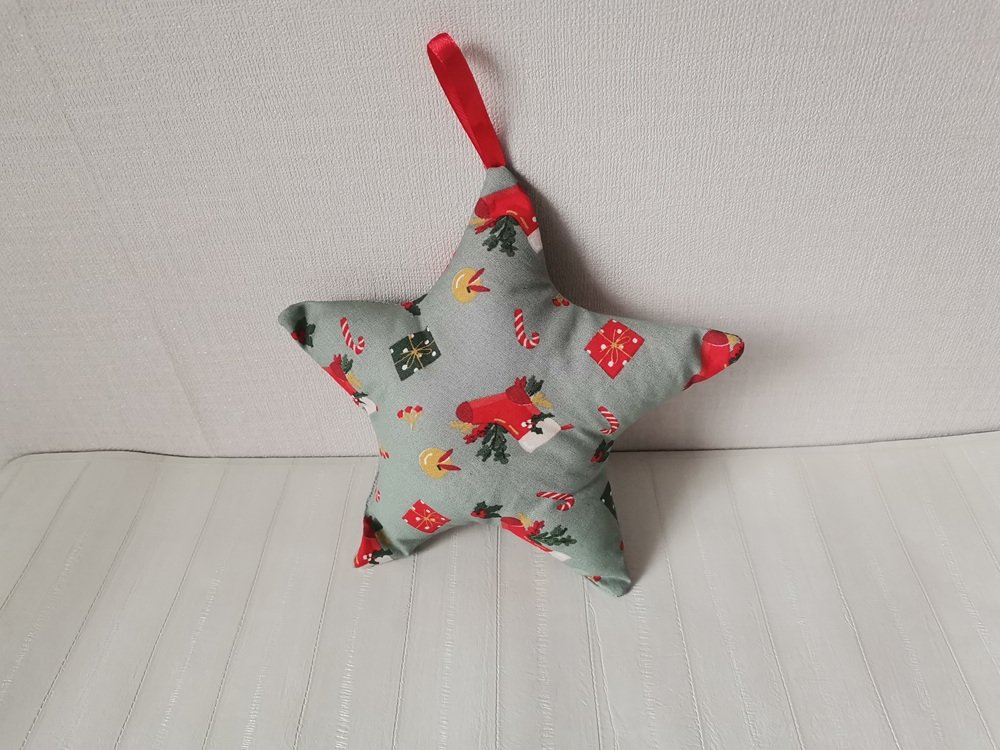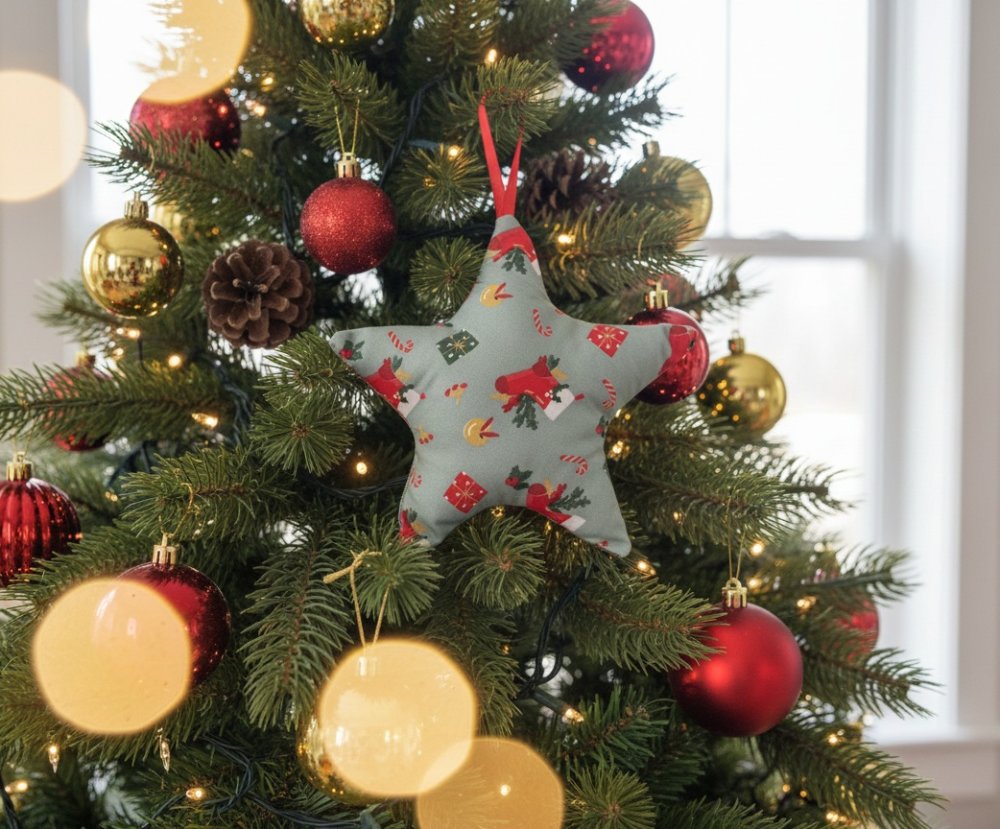 Etoile de noël à suspendre en tissu coton vert motifs cadeaux