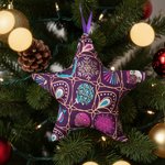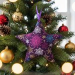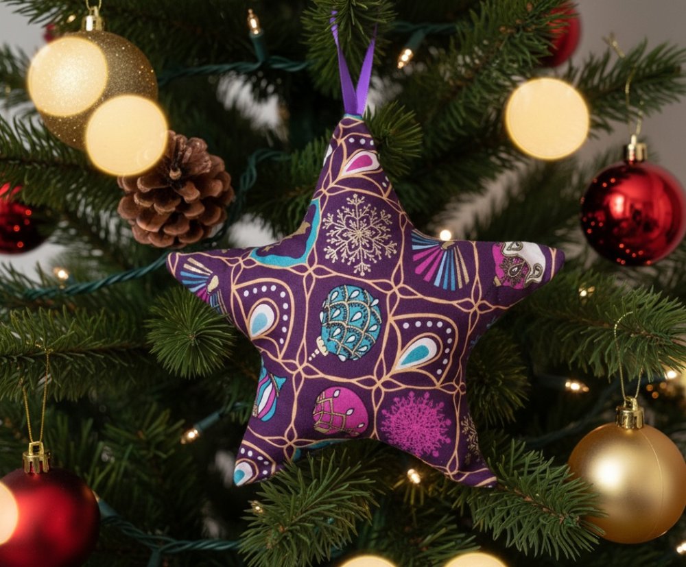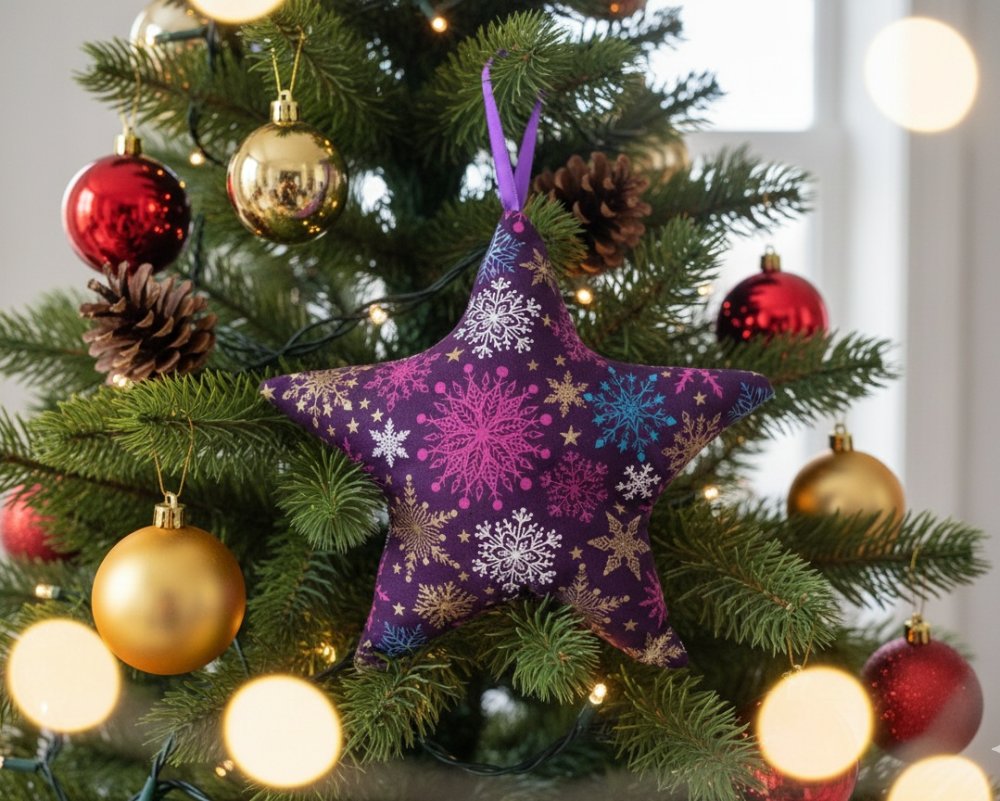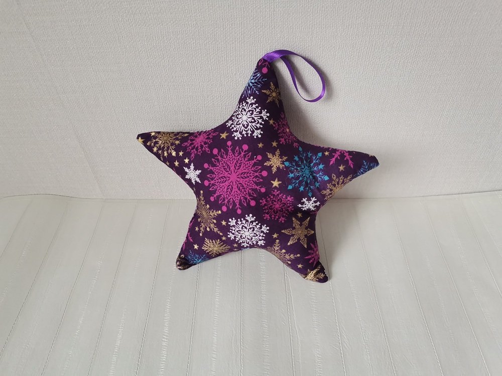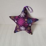 Etoile de noël à suspendre en tissu coton violet motifs flocons