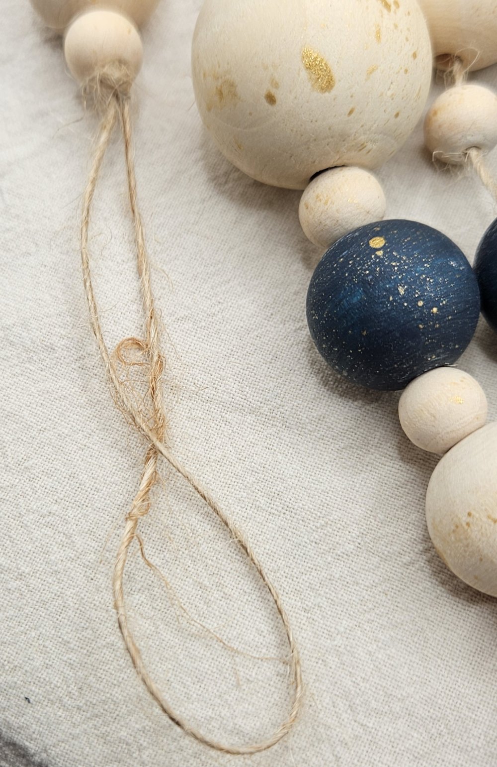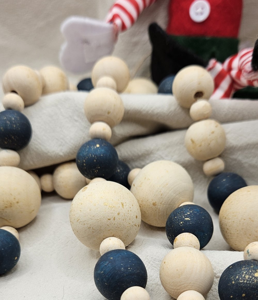 Guirlande de Noël en perles de bois, entièrement réalisée à la main.