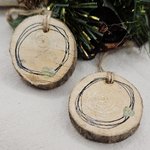 Duo de petites décorations en vrais rondins de bois, soigneusement poncés puis décorés à la main.
