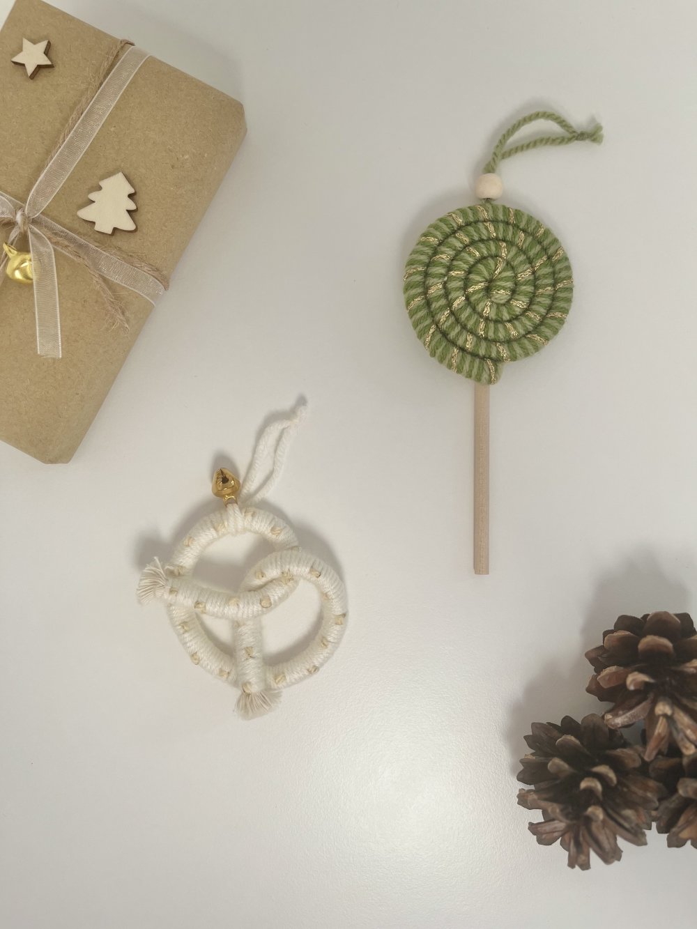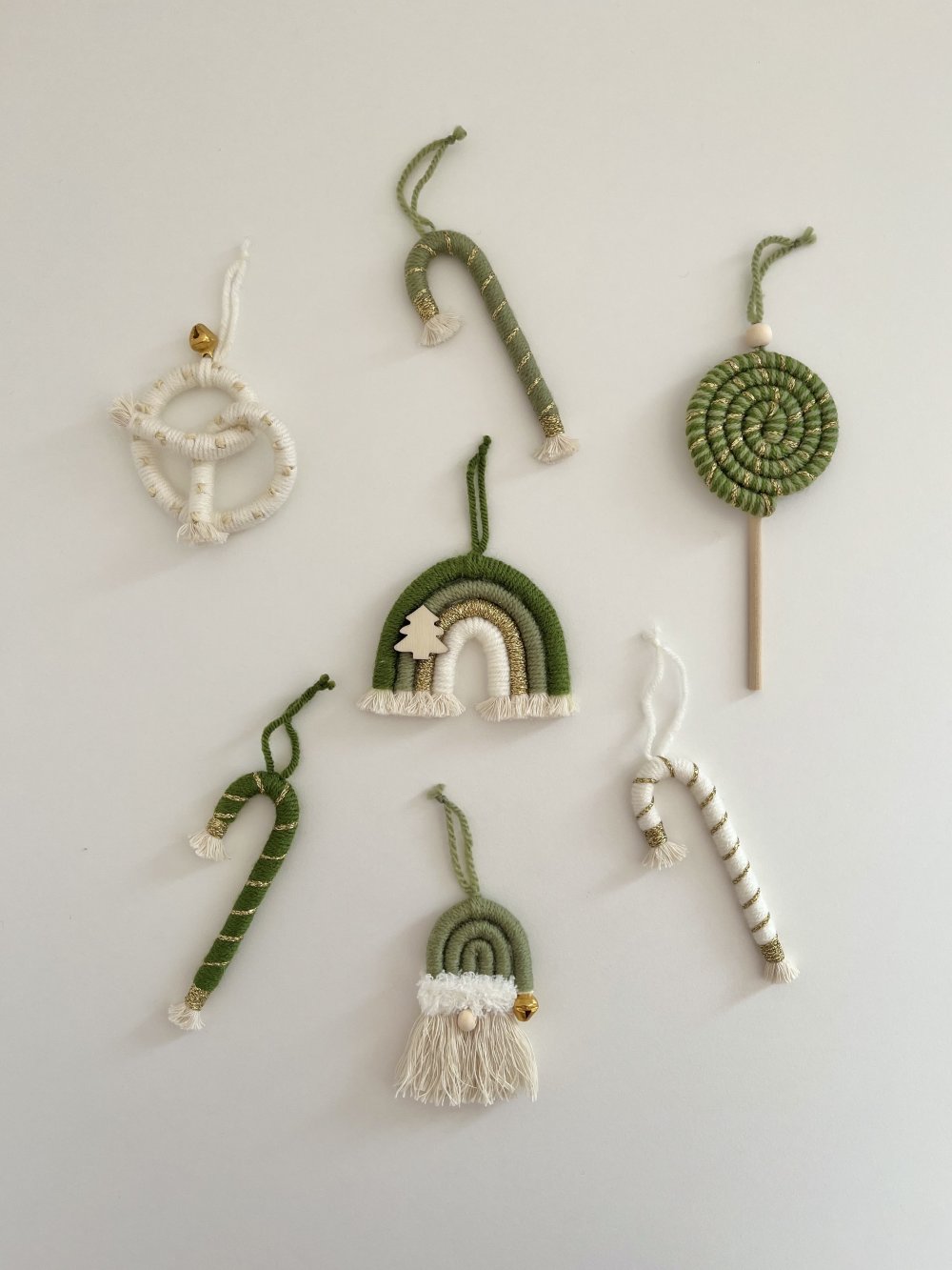 Ornements sapin de Noël en macramé « Forêt enchantée »