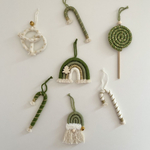 La collection Forêt Enchantée évoque les balades hivernales au cœur des sapins enneigés. Avec ses teintes vert profond, ses formes gourmandes et ses matières naturelles, chaque ornement en macramé semble tout droit sorti d’un chalet douillet.